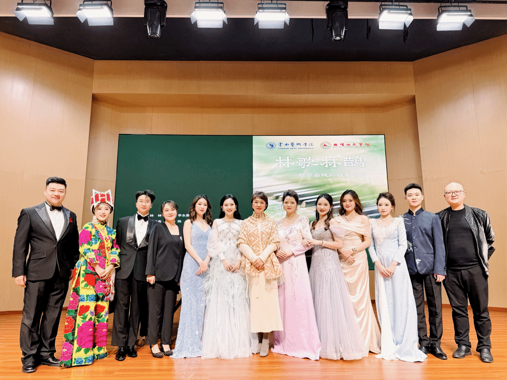 “林歌林鹊”——林林教授教学实践汇报音乐会,汇聚了民族、美声、通俗、原生态等多重唱法,以独唱、对唱、重唱等多元化的演出方式,在汇报音乐会上绽放异彩。这不仅体现了教师兼容并蓄的教学理念与深邃的教学思路,更显现了教师博学多识的知识架构。此次汇报音乐会以院校携手为平台,构筑了艺术与教育融合的新典范,致力于培养新时代的文化艺术新秀,为云南乃至全国贡献了更多既有专业素养又具创新精神的杰出人才,对推动云南民族文化建设及音乐文化的协同发展作出了积极贡献。