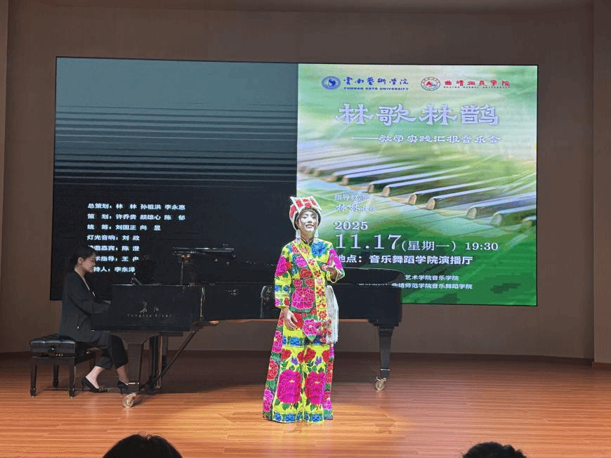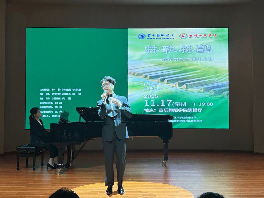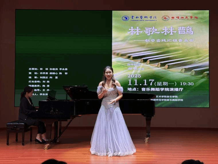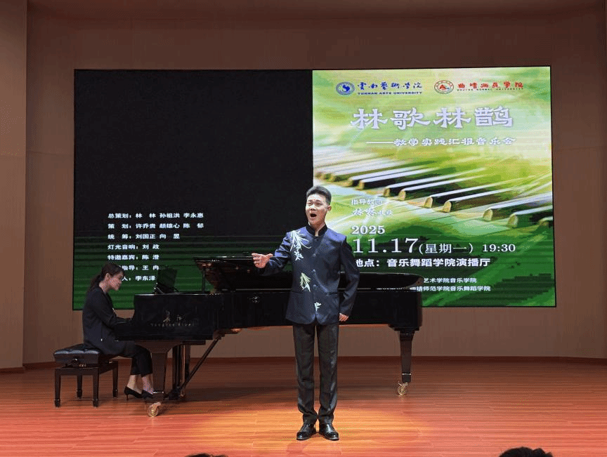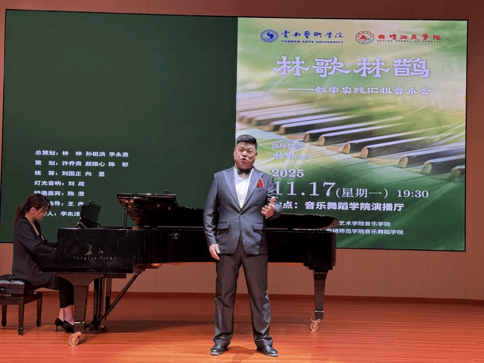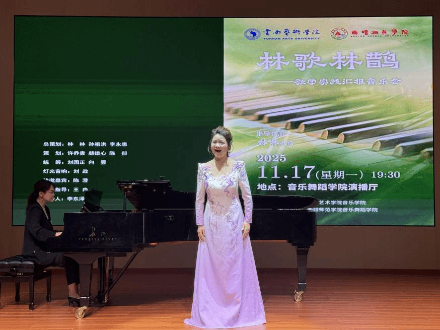 2025年11月17日,“林歌林鹊”——林林教授教学实践汇报音乐会在曲靖师范公司音乐舞蹈公司演播厅圆满举行。此次音乐会由db真人体育官网主办,曲靖师范公司音乐舞蹈公司承办。