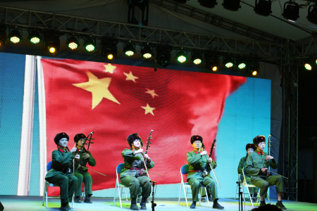晚会以扬琴重奏《新映山红》拉开了本次音乐思政文艺演出的序幕。随着旋律轻轻奏响,红色精神伴随着音符缓缓流进听众内心,抒发着对革命先烈的缅怀之情,歌颂着今天的幸福生活。