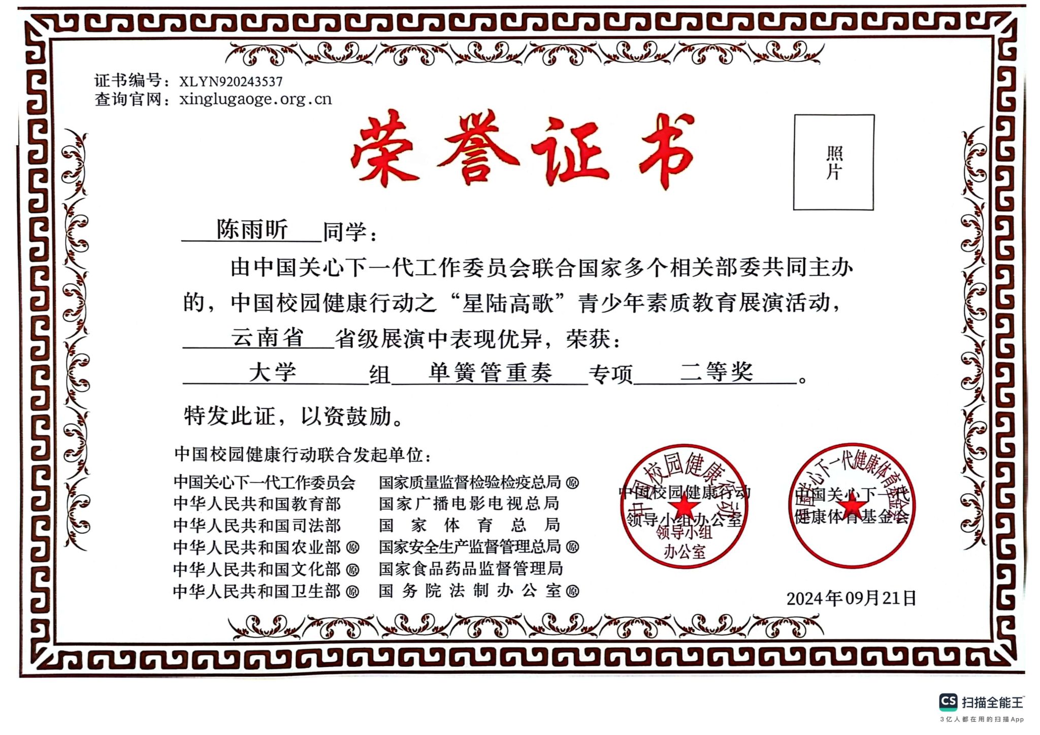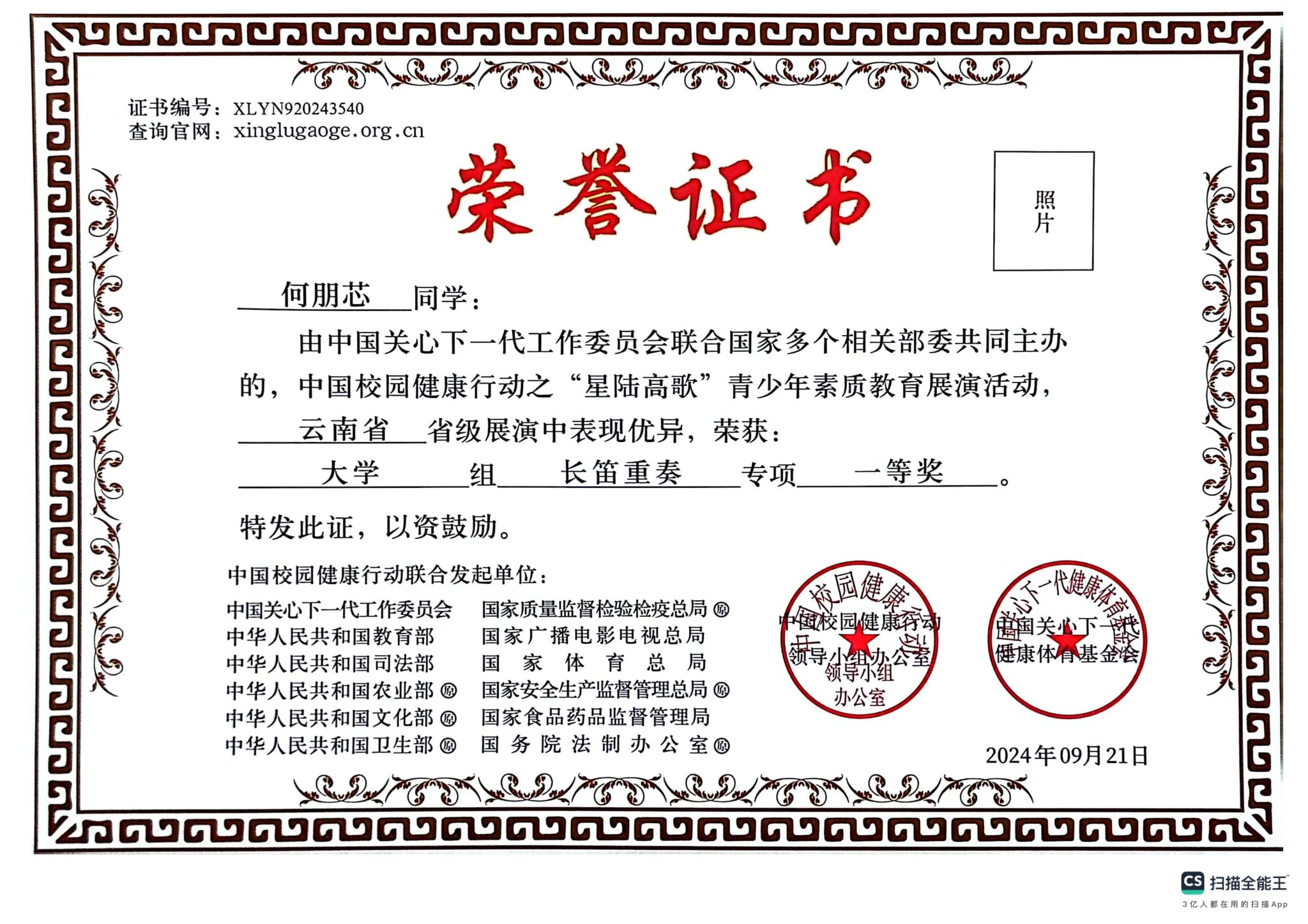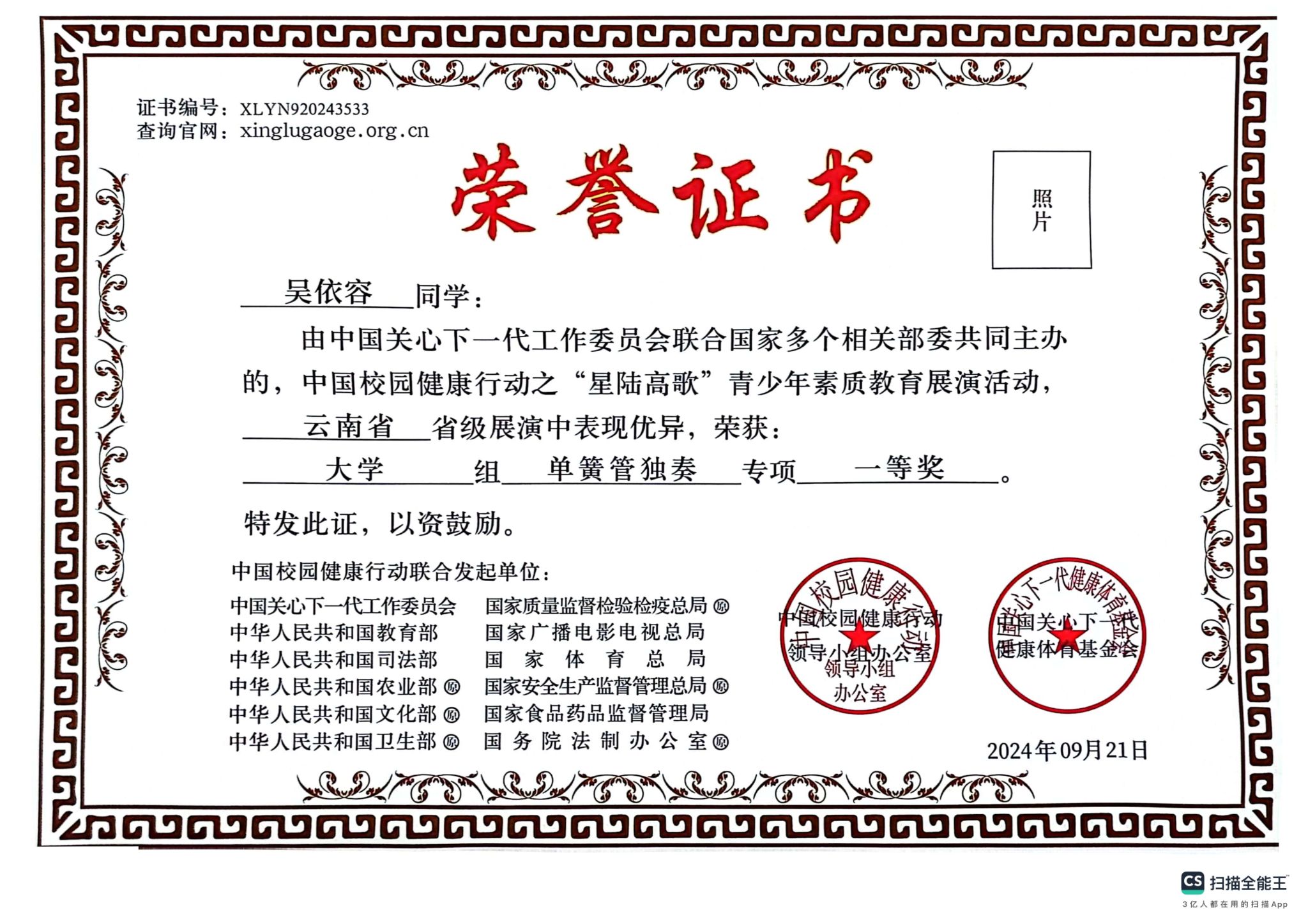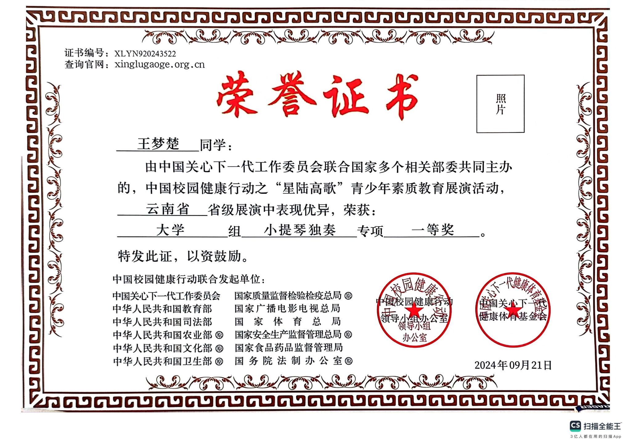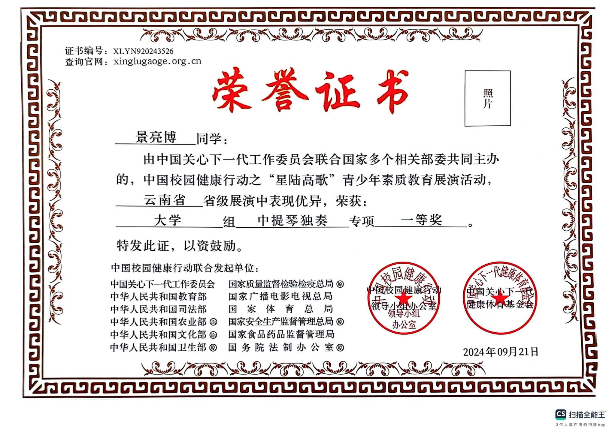 孙炜杰、李宇童、罗浩月、马尔浩(指导教师:王鹏),张德广(指导教师:王昱旻),杨雅淇(指导教师:吕佳奇)获大学组独奏二等奖。