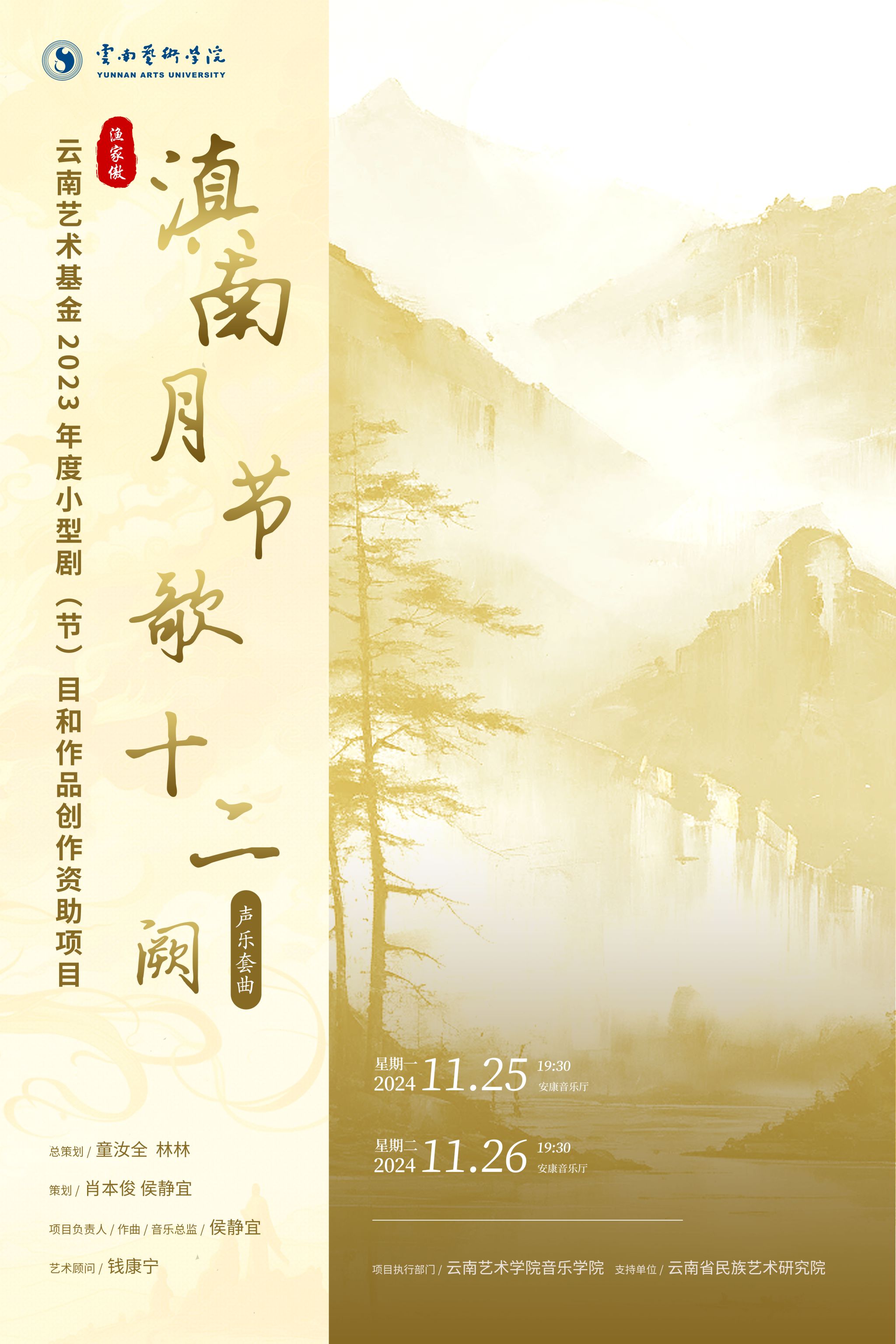 云南艺术基金2023年度小型剧(节)目和作品创作资助项目声乐套曲滇南月节歌十二阙