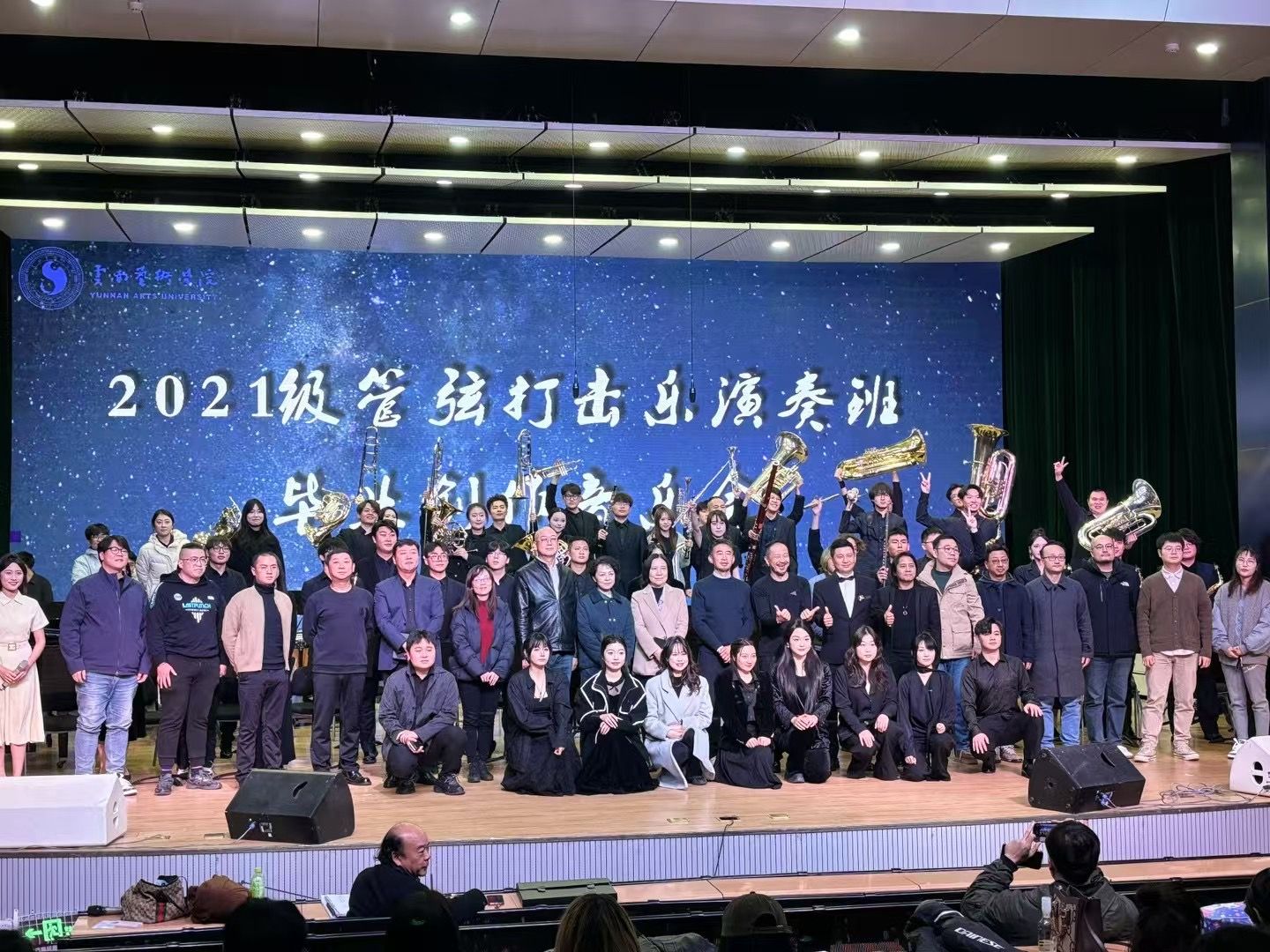 2021级管弦打击乐班毕业创作音乐会于11月26日下午在安康音乐厅顺利举办,班级33名员工参加演出。云南艺术公司党委副书记李彦萍,校团委书记赵颖到场与师生一起观看演出。