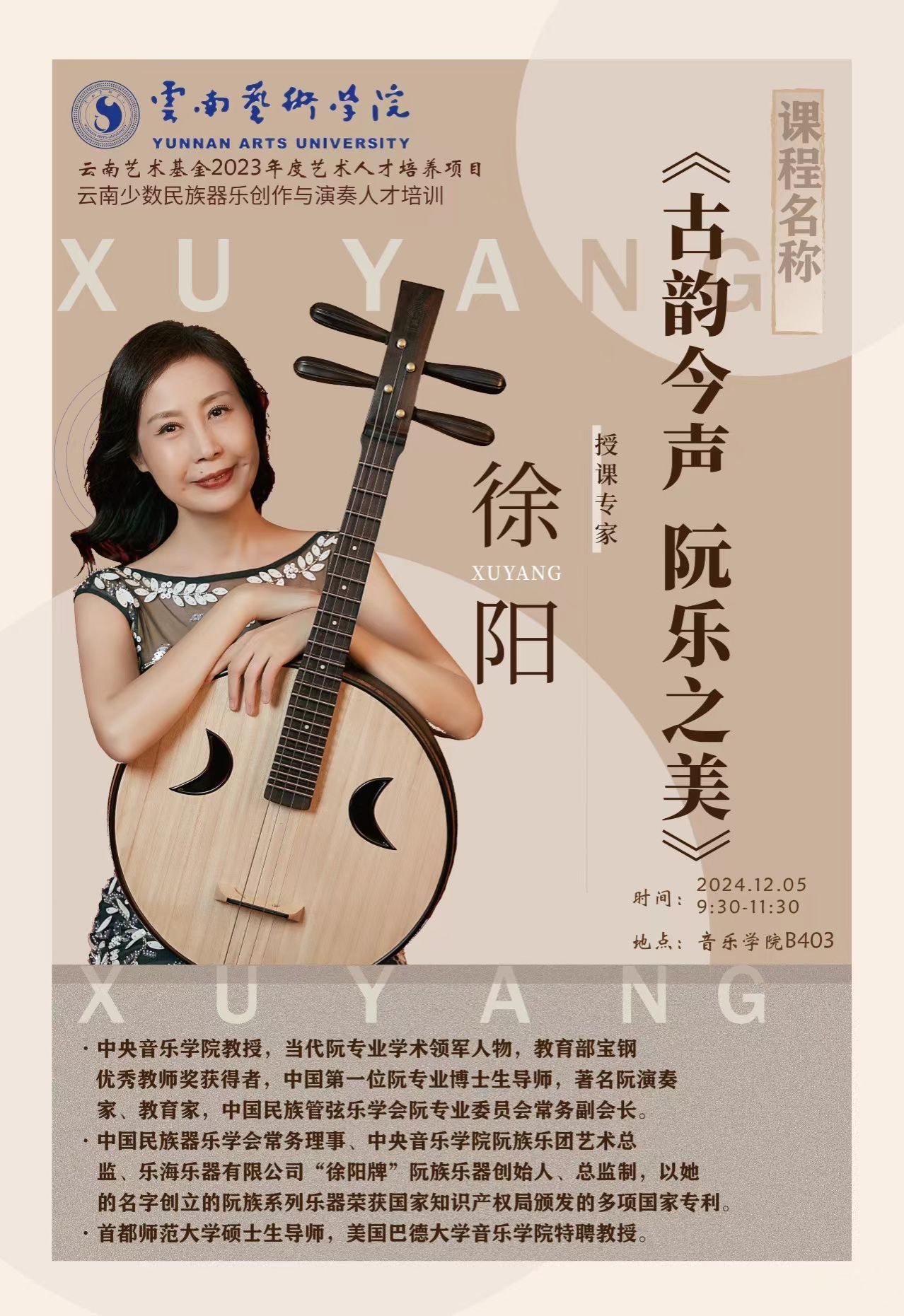 云南艺术基金2023年度艺术人才培训项目云南少数民族器乐创作与演奏人才培训——《古韵今声 阮乐之美》