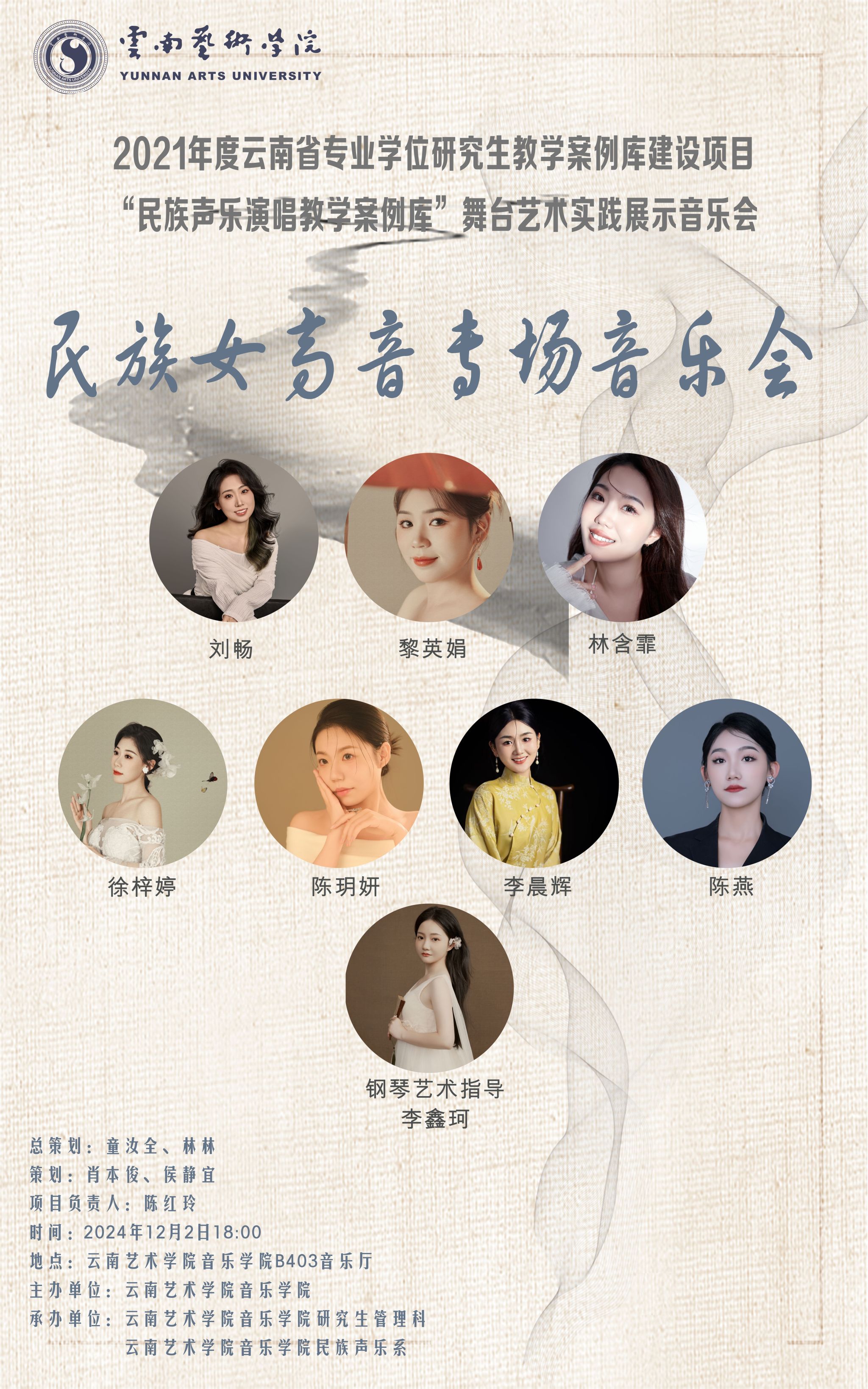 2021年度云南省专业学位研究生教学案例库建设项目“民族声乐演唱教学案例库”舞台实践展示音乐会——民族女高音专场音乐会