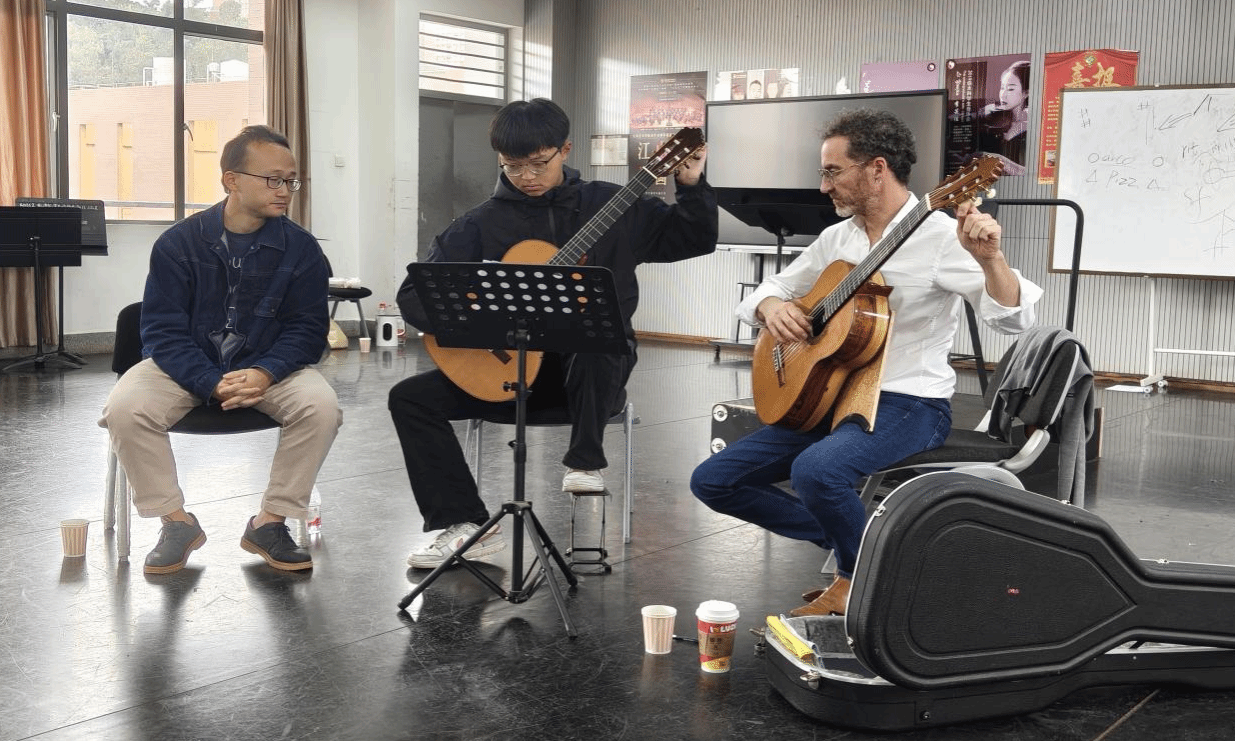 2025年10月8日至9日,经过前期筹备,法国著名古典吉他演奏家雷米·朱赛尔姆(Rémi Jousselme)和打击乐演奏家雷诺·德特(Renaud Detruit)到公司开展学术交流与讲座。
