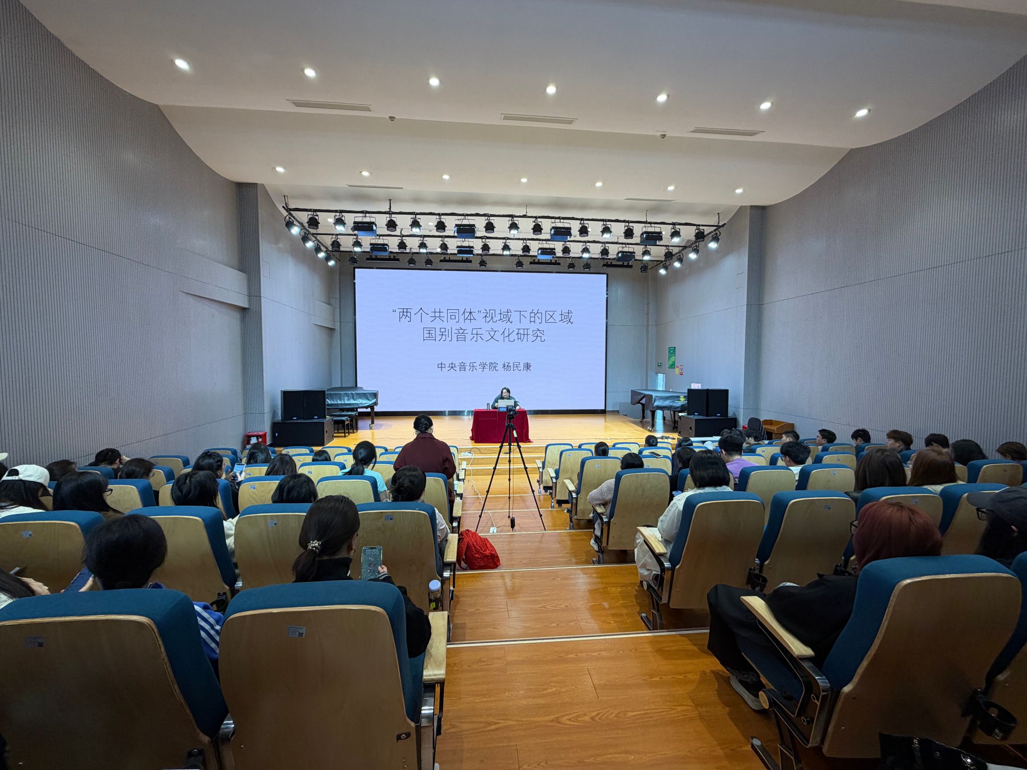 2026年3月17日下午,由db真人体育官网主办的柔性引进专家系列学术活动之一——“两个共同体”视阈下的区域国别音乐文化研究学术讲座在db真人体育官网B403教室顺利举行。讲座伊始,杨教授从“两个共同体”——即中华民族共同体与人类命运共同体的理论视角切入,阐述了这一研究框架对区域国别音乐文化研究的指导意义。他指出,“两个共同体”不仅是国家文化战略的重要内容,也是推动民族音乐学研究深入发展的理论基石。