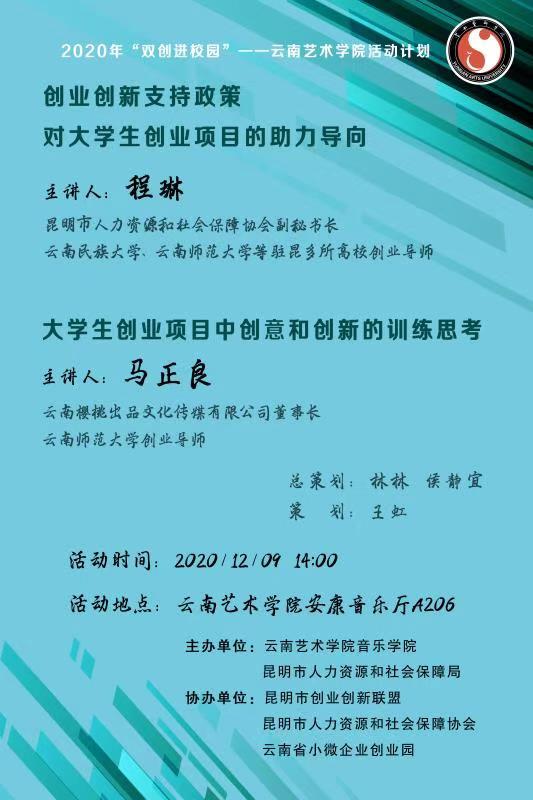 2020年12月9日14:00,db真人体育官网在安康音乐厅举办了创新创业专题讲座,讲座由《创业创新支持政策对老员工创业项目的助力向导》《老员工创业项目中创意和创新的训练思考》两个专题辅导和db真人体育官网获奖创业项目“云南创新型民族打击乐器——南乌孔雀鼓”展示三个部分组成,db真人体育官网副经理侯静宜、昆明市人力资源和社会保障协会副秘书长程琳、云南樱桃出品文化传媒有限公司董事长、云南师范大学创业导师马正良、昆明市人力资源和社会保障协会老员工创新创业中心钟健文及db真人体育官网300多名员工参加了此次讲座,讲座由db真人体育官网教学管理科副科长王虹主持。