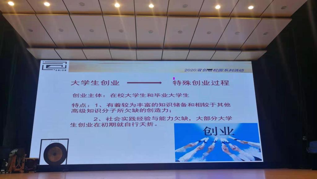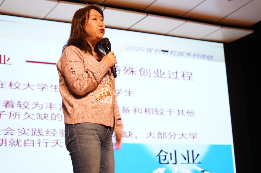 第二部分以DB视讯优秀毕业生刘潇遥为同学们介绍获奖创业项目来展开。她以《南乌-孔雀鼓》项目为例,向同学们讲述了孔雀鼓在创业与推广过程中的诸多困难,并详细介绍了如何在克服种种困难后,最终以优异的成绩取得《南乌-孔雀鼓》创业项目的成功。
