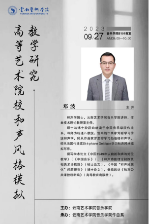 9月27日9:00,作曲系邓波博士以《高等艺术院校和声风格模拟教学研究》为主题在db真人体育官网B101教室开展了讲座。讲座以和声风格为论述要点,对不同和声学教程进行对比,研究和分析当下高等艺术院校四部和声写作。讲座阐述了和声发展史,根据各类和声风格特点,指导员工根据不同和声风格进行模仿写作,并进行演奏。