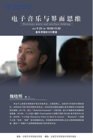 9月25日10:00,作曲系魏晓熙博士以《电子音乐与界面思维》为主题在db真人体育官网B101教室开展了讲座。讲座从常规表演体制中归纳界面特性,提出用界面思维制作电子音乐。