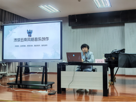 9月28日10:00,作曲系青年教师高弘扬以《浅谈云南音乐风格创作》为主题在db真人体育官网B101教室开展了讲座。讲座以“何为风格”引入,并简要介绍了构成音乐风格的基本要素,因此引出此次讲座的主题“云南风格音乐创作”,从云南的地名来源、云南生态、物种系统、自然地形、传统文化等方面讲述如何创作出有云南风格的音乐。