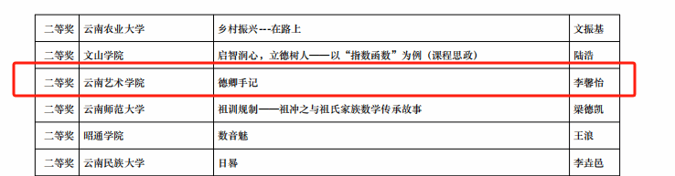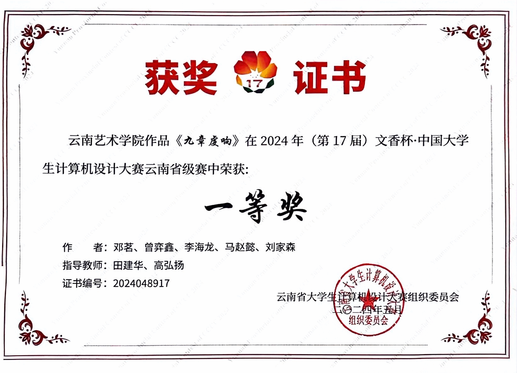 一等奖获奖作品分别为:《九章虔响》负责人邓茗,组员曾弈鑫、李海龙、马赵懿、刘家森,指导教师田建华、高弘扬;《京房历险记》负责人苏珈萱,组员龙霄、许莉、杨景舒,指导教师魏晓熙。二等奖获奖作品为《德卿手记》,负责人李馨怡,组员黄卓冉、黄彰杰、蒋颜玉,指导教师田建华。