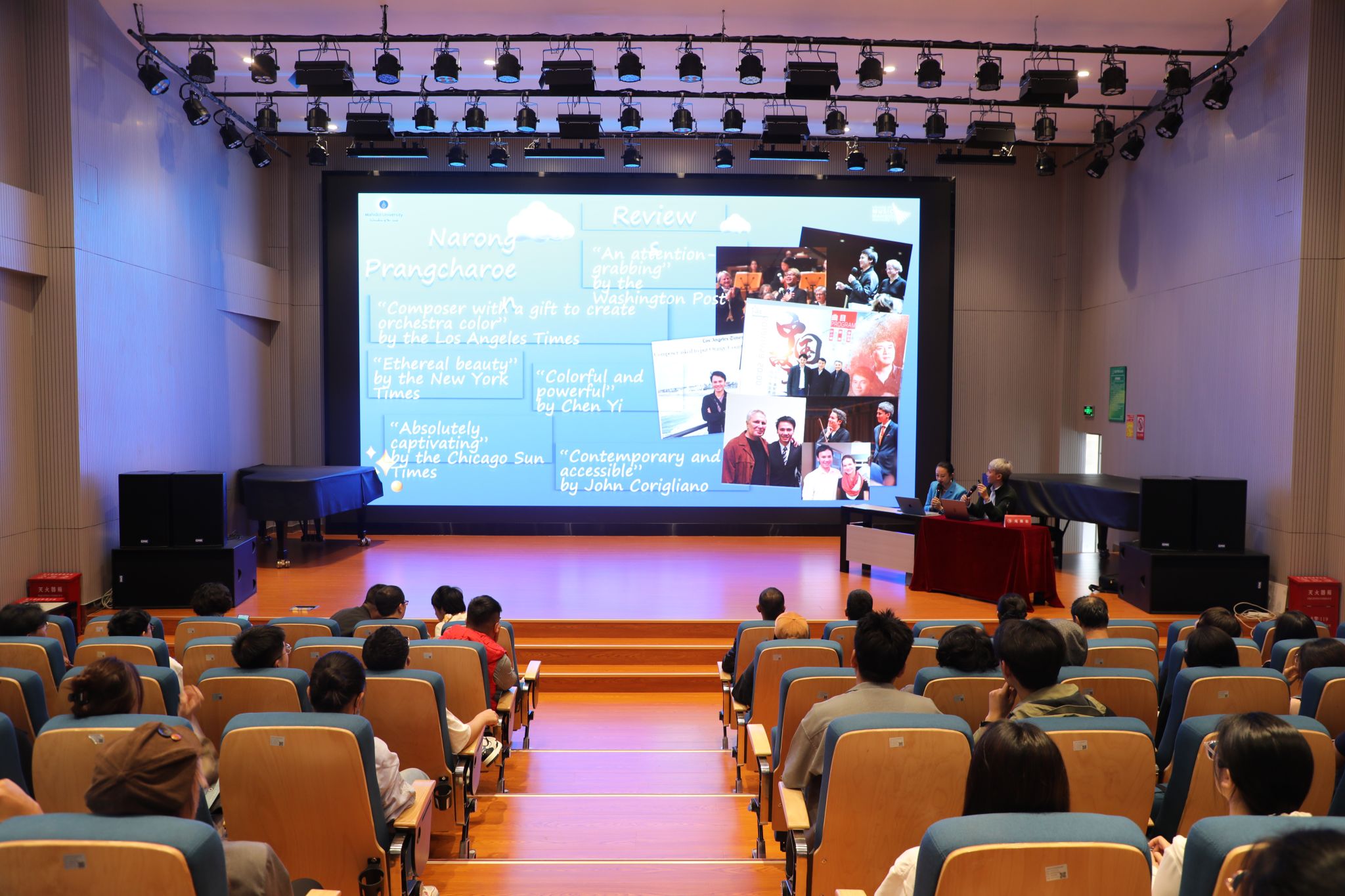 签约仪式后,泰国玛希隆大学庞那荣教授专题讲座在db真人体育官网B403举行,DB视讯音乐公司党委副书记、经理林林,党委委员、副经理侯静宜,以及作曲系全体师生参加此次讲座。在讲座上,庞那荣教授和大家分享了自己创作的步骤;从可视化图表、音高、作品结构、配器等多方面介绍并展示了他的作品《reflection of shadow》(暗影映像)。庞那荣教授在这部作品中运用了多种现代创作技法,对于作曲系师生的实践创作具有较高的参考价值。在讲座最后,作曲系师生与庞那荣教授展开了热烈讨论。