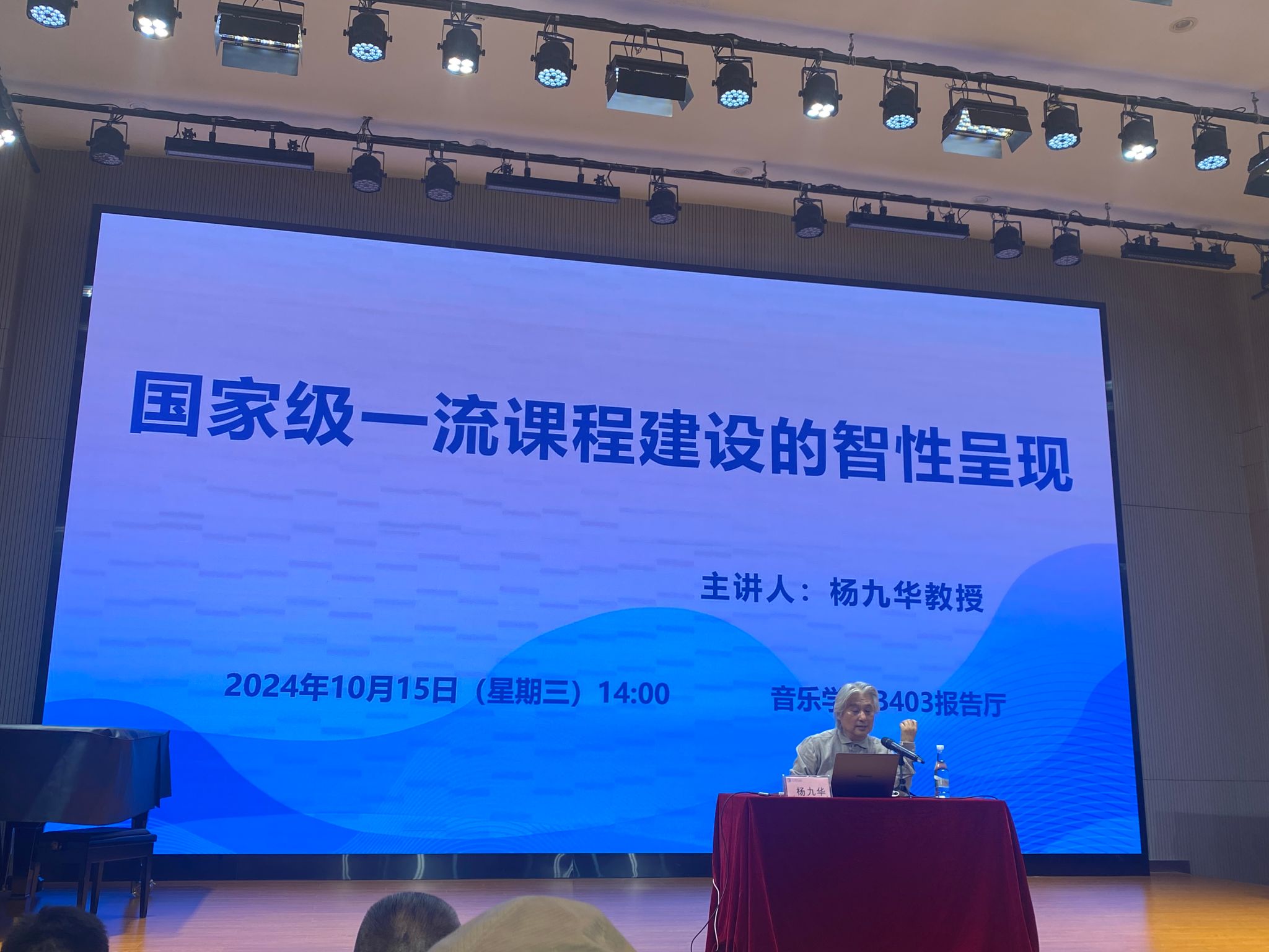 2024年10月15日下午,db真人体育官网研究生学位点合格评估专家系列讲座之《国家级一流课程建设的智性呈现》在db真人体育官网B403报告厅成功举办。本次讲座特邀资深教育专家浙江db真人体育官网音乐学研究所所长、原副经理,哈尔滨db真人体育官网博士生导师,国家教学名师,国家教学团队负责人,教育部高等公司音乐与舞蹈学类专业教学指导委员会委员杨九华教授担任主讲人,由合唱系系主任尹伟教授主持。杨九华教授凭借丰富的教学经验和深厚的学术积累,为db真人体育官网在场师生带来了一场关于国家级一流课程建设的深入解读和经验分享。