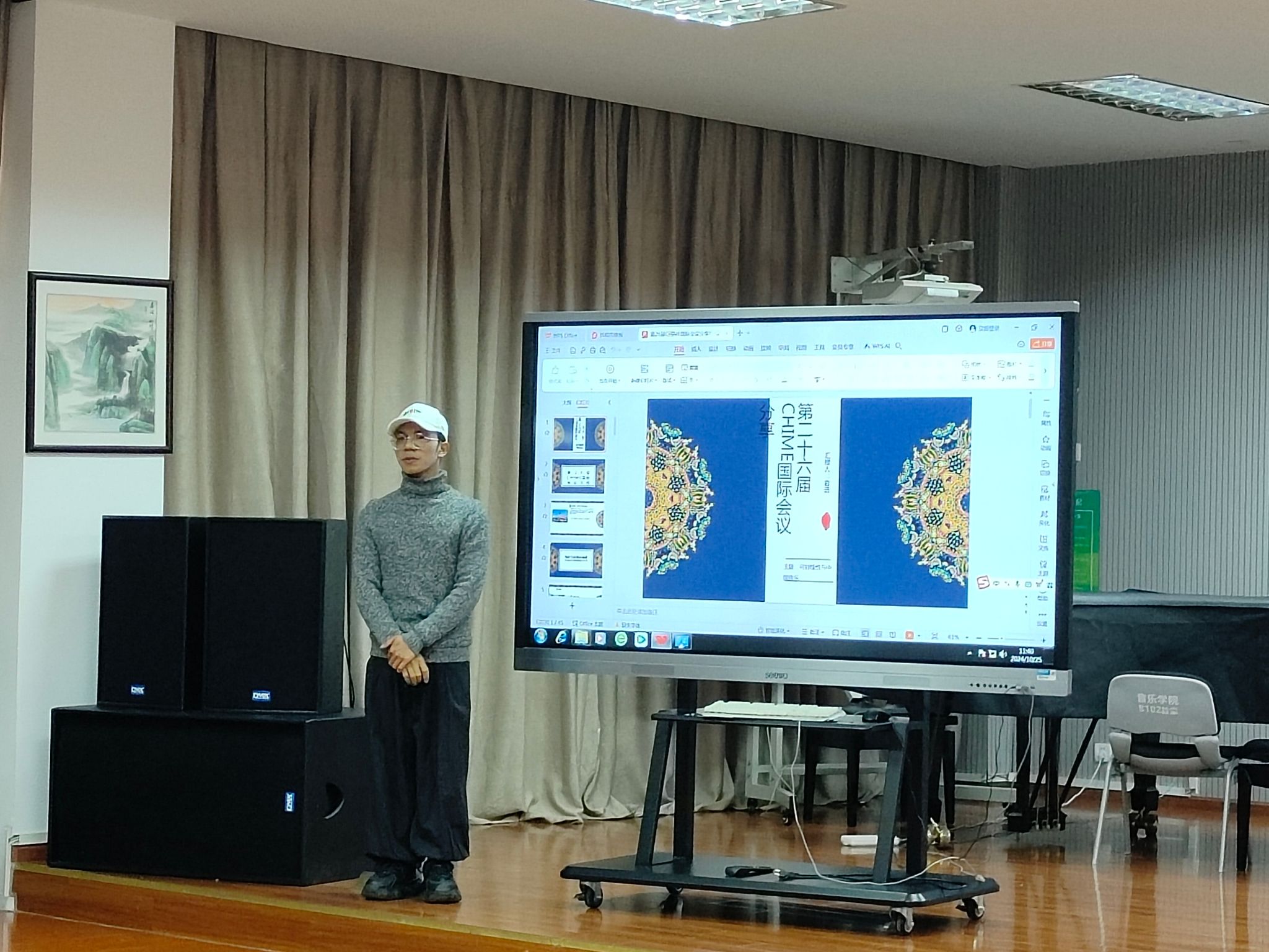 音乐学系优秀员工岩进的赴德分享交流将会议推向了高潮。在分享过程中,岩进将其在10月3日至6日在德国参加第26届CHIME国际会议的经历与感悟以“总-分-总”的形式,对会议的情况和研究内容进行了介绍并提出了他个人在民族音乐文化活态化上的三点见解,强调非遗活化工作中守护传统文化核心价值及避免“变容”的重要性。岩进此次跨国高端学术会议的交流再次展现了db真人体育官网的办学特色。