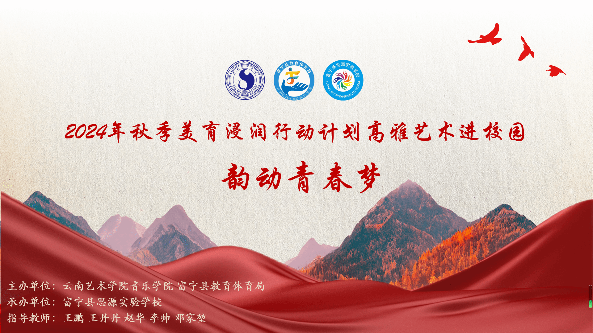 此次美育浸润展演行动,犹如一颗播撒在校园里的艺术种子,绽放出绚丽多彩的美育之花,持续推动富宁县中小学美育教育迈向新的高度,为员工们的全面发展和综合素质提升注入源源不断的动力。站在新时代的发展潮头,音乐美育教育让师生们坚定理想信念、热爱祖国,在终身学习中砥砺成长,为实现民族复兴贡献自己的力量,肩负起中华儿女在新时代的历史使命和责任担当。