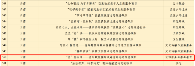《“音”你而来——音乐思政辅助矫治戒毒青年志愿服务项目》,以“音乐思政+辅助矫治戒毒”为宗旨,针对性开设民族音乐体验课,由团队师生讲授中国传统民族乐器和相关理论课程,以戒毒人员为主体让其融入音乐中,用音乐这双无形的手对他们开展柔性疗愈,该项目得到了戒毒所领导的高度重视和肯定,获得了良好的社会反响,扩大了团队影响力,展现了云艺学子精神面貌,体现了艺术服务社会的本质。