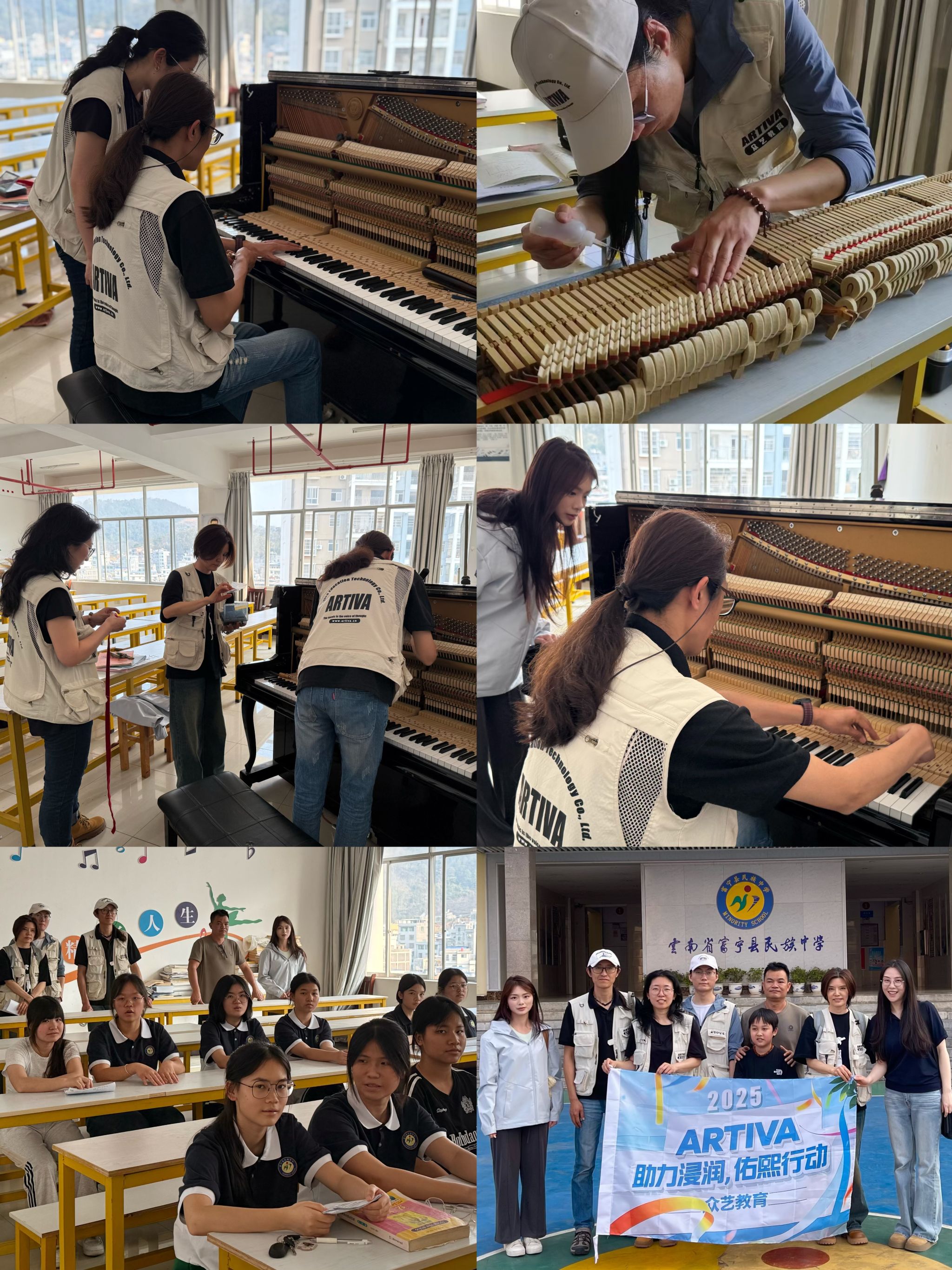 在第三轮美育浸润行动中,db真人体育官网师生团队发现富宁县驻点公司的钢琴损坏严重,已无法满足正常教学需求。由于当地缺乏专业调律师,钢琴修复工作面临诸多困难。经过多方努力,db真人体育官网携手众艺教育科技(杭州)有限公司为富宁县音乐教师开展钢琴调律远程线上课程,同时由众艺教育安排专业调律师为当地公司的钢琴进行免费调律与维修。