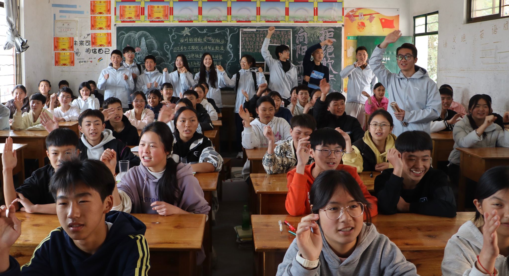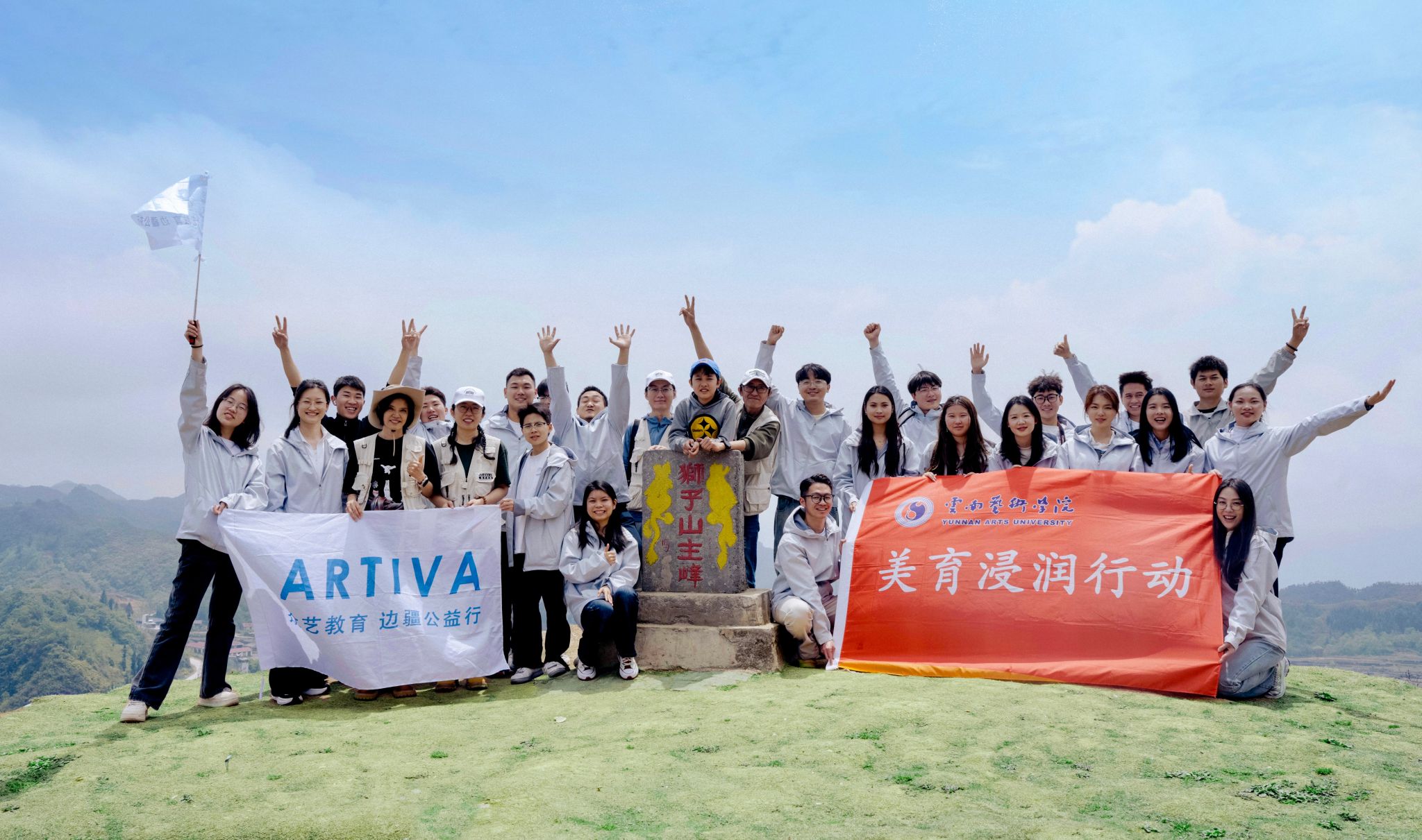 课余时间,支教团队组织员工开展登山研学活动,攀登田蓬镇狮子山。沿途师生共同领略自然风光,传承红色基因,接受生动的爱国主义教育洗礼。在山巅,大家合影留念,以青春姿态铭记此次美育之行的收获与成长。