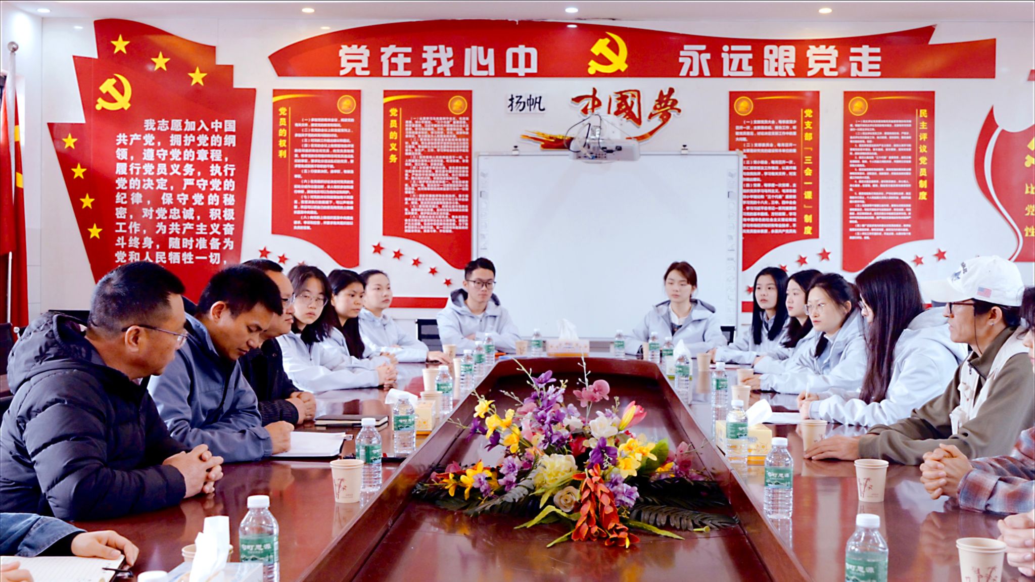 两场教学活动结束后,支教老师们及时组织课后教学研讨,围绕课堂设计、教学效果及员工反馈展开深入交流,持续优化教学方案。与此同时,支教团队还与富宁二中领导团队举行了“美育浸润行动”专项座谈会,双方就美育课程建设与后续合作计划进行了深入探讨,为进一步深化美育实践探索新路径。