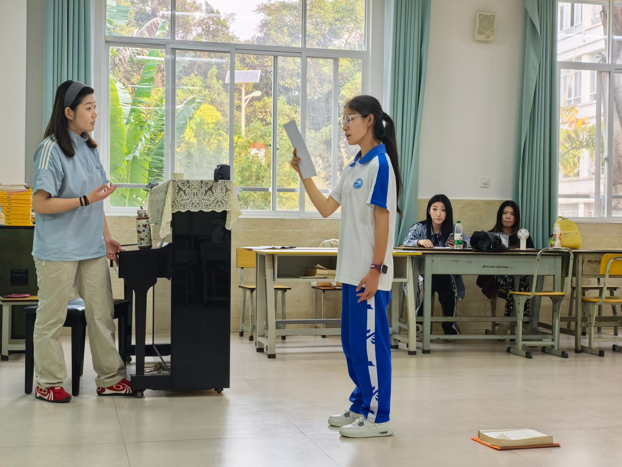 3月20日,公司驻红河县带队教师同支教员工前往红河一中开展巡回授课,并对支教员工的教学设计与教案撰写进行指导。刘泽慧对声乐员工进行《凤求凰》一对一辅导课。
