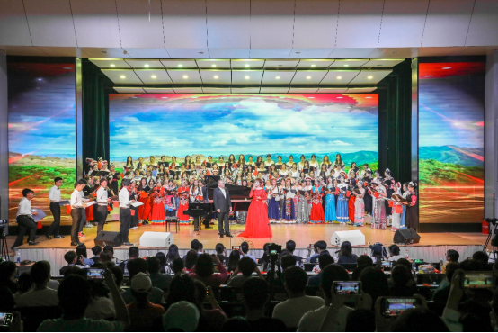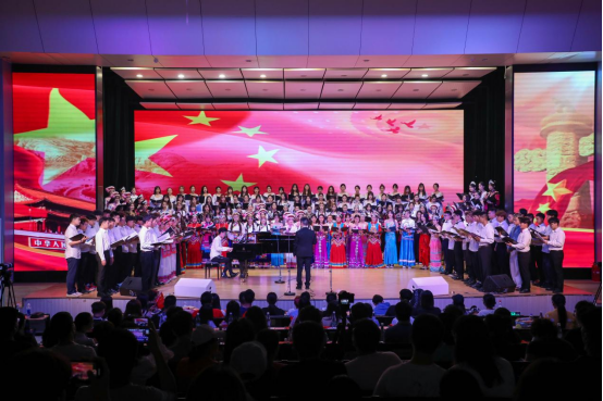 公司党委黄雁玲书记与领导嘉宾应邀上台与师生共同唱响《没有共产党就没有新中国》等经典歌曲
