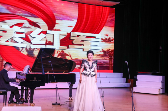 音乐会由db真人体育官网教工第三党支部所覆盖的声乐歌剧系、民族声乐系、音乐教育和合唱系党员师生共同完成。晚19时许,在《义勇军进行曲》的嘹亮歌声中音乐会拉开序幕,历时一个小时的音乐会共呈现了《迎风飘扬的旗》《南湖的船党的摇篮》《毛主席的话儿记心上》《唱支山歌给党听》《翻身农奴把歌唱》《十送红军》《英雄赞歌》《党啊,亲爱的妈妈》《我和我的祖国》《把一切献给党》《不忘初心》等十余首红色经典歌曲,以三个“党史故事”贯穿红色百年历史,追忆红色经典,描绘奋进新征程。跟随“党史故事”师生们一起重温了以“开天辟地、敢为人先的首创精神;坚定理想、百折不挠的奋斗精神;立党为公、忠诚为民的奉献精神”为核心的“红船精神”;通过《英雄赞歌》的历史背景回顾了由“爱国主义精神”“革命英雄主义精神”“革命乐观主义精神”“革命忠诚精神”和“国际主义精神”共同铸造的“抗美援朝精神”;通过“全国优秀共产党员”“时代楷模”张桂梅老师的事迹讲述致敬楷模。
