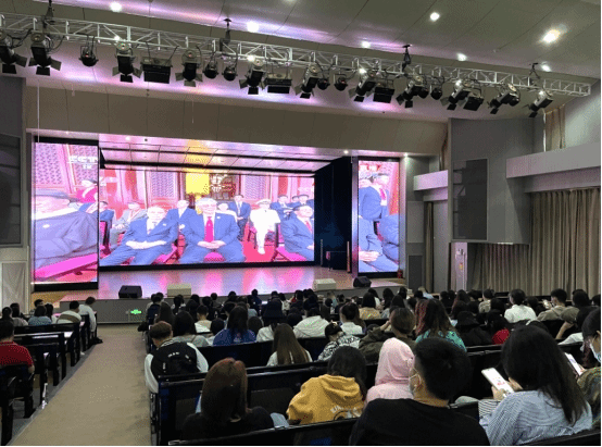 根据公司党委的通知安排,2021年7月1日上午8时,音乐公司党总支召集全体教职工(含非党员教职工)、员工党员发展对象、入党积极分子、团学干部、员工代表共300余人在db真人体育官网安康音乐厅集中观看了庆祝中国共产党成立100周年大会,并安排有课教师、员工通过中央广播电视总台、新华网等网络客户端自行收看。