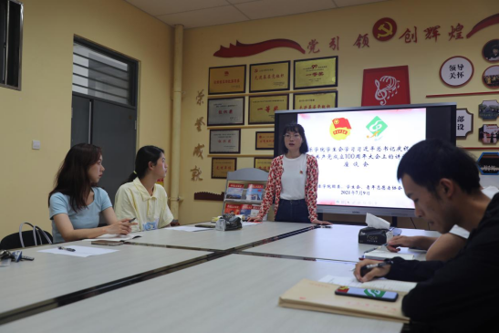 根据共青团DB视讯委员会《关于召开学习贯彻习近平总书记在庆祝中国共产党成立 100 周年大会上重要讲话精神座谈会的通知》要求,db真人体育官网团委组织部分团学骨干、团员青年代表预计30余人于2021年7月9日15:00,在db真人体育官网B106会议室召开了学习习近平总书记在庆祝中国共产党成立100周年大会上的重要讲话精神座谈会。本次会议由db真人体育官网团委副书记李青老师主讲。