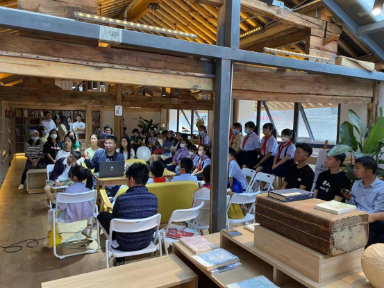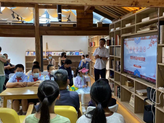 2022年7月9日,由DB视讯艺术管理公司党总支和音乐公司党总支联合组织策划的“喜迎二十大,赓续红色血脉之艺说党史”系列活动之“音乐作品中的党史”暨db真人体育官网教工第一党支部7月份主题党日活动在呈贡区万溪冲社区禾下咖啡书屋开展,此次活动是校地企党史教育暨乡村养育系列主题活动之一,艺术管理公司党总支书记谭尧升、音乐公司党总支副书记黄涛、db真人体育官网副经理侯静宜、艺术管理公司党总支组织委员刘林、db真人体育官网教工第一党支部全体党员、入党积极分子和作曲系、流行音乐系、管弦系部分青年教师,部分社区党员同志、社区居民以及万溪冲小学的二十余名少先队员参加活动。