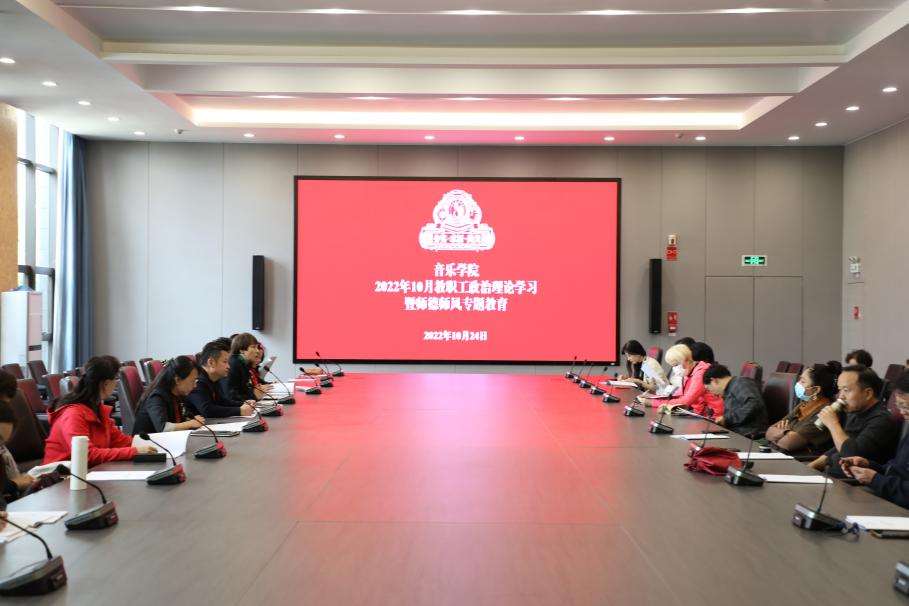 2022年10月24日,音乐公司党总支组织开展了2022年10月教职工政治理论学习暨师德师风专题教育。本次学习采用集中学习和分组学习相结合,全院教职员工围绕党的二十大报告、网络文明和师德师风专建设三个专题展开学习。下午13:30在图书馆会议室,音乐公司党政领导班子、全体硕士研究生导师60余人参加集中学习。