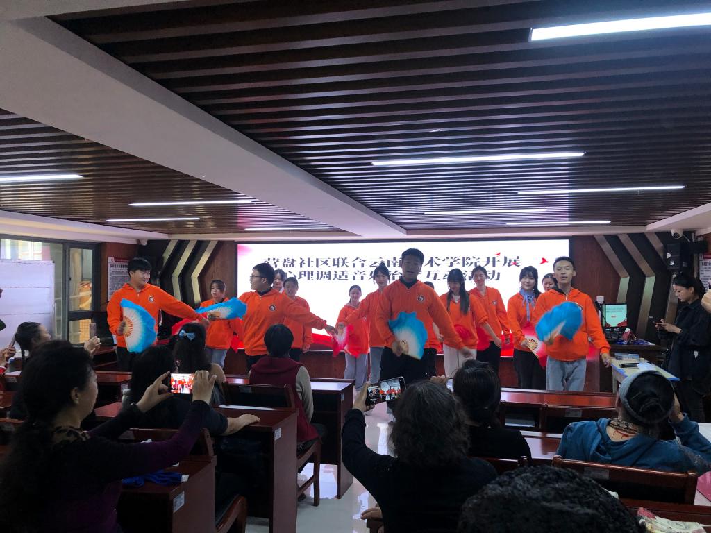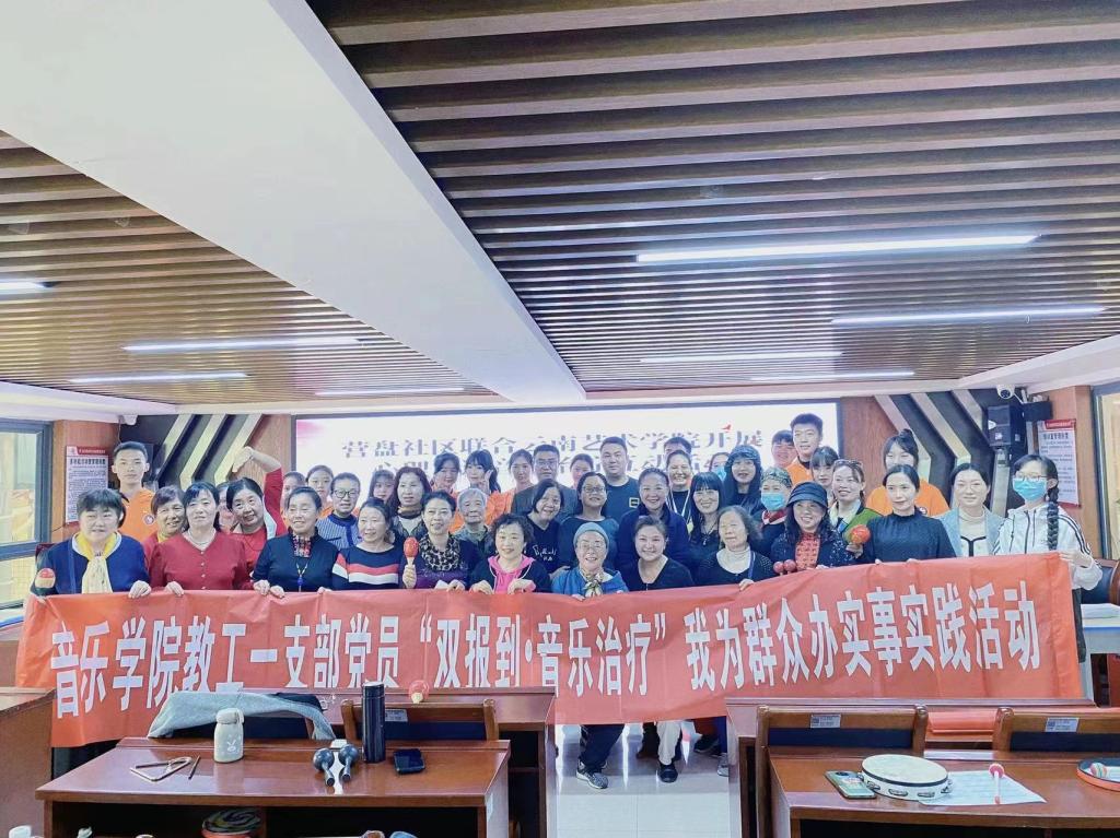 2022年10月26日14:00,db真人体育官网教工第一党支部15名教师党员、公司团委15名团学干部赴呈贡区雨花街道营盘社区居民委员会开展心理调适音乐治疗互动活动。此次活动为音乐公司党总支开展党员干部双报到双服务双报告,服务基层、服务群众的重要体现,也是公司开展“党建带团建 领航共筑梦”校外考察实践活动的重要载体。