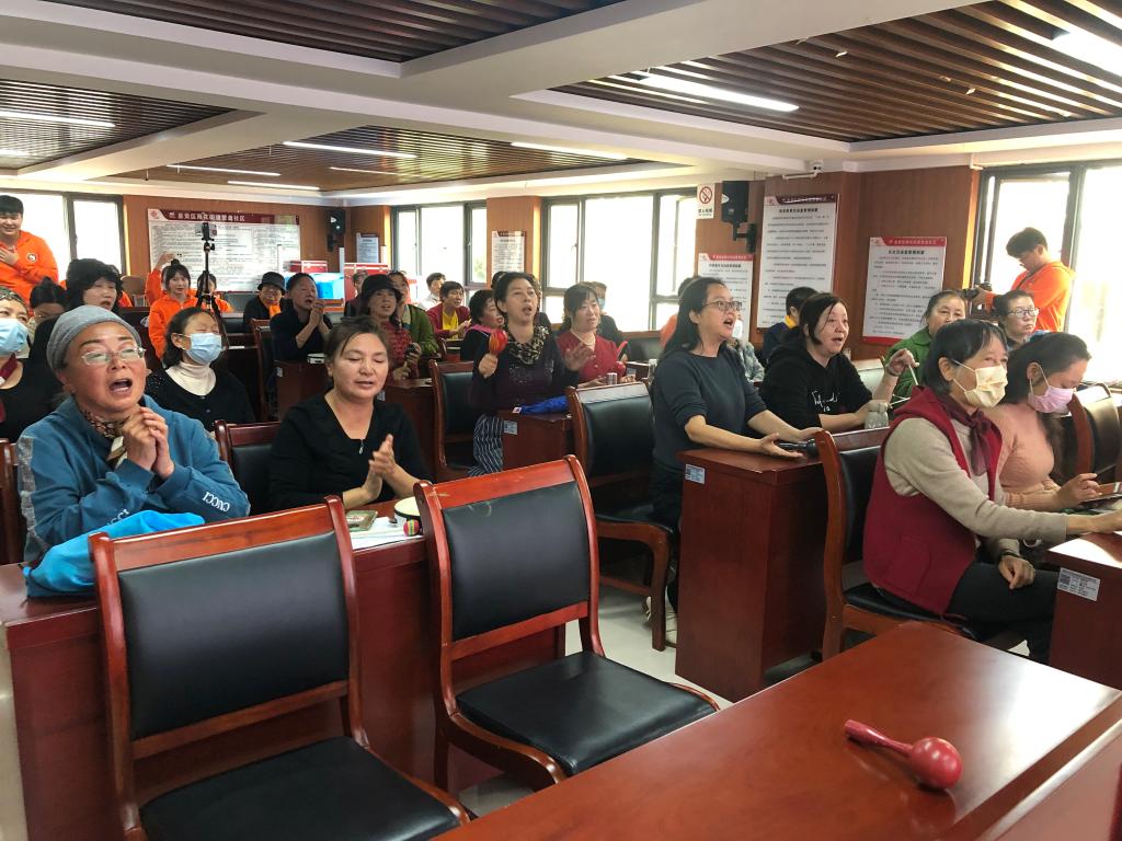 根据活动前期调研,了解到社区中老年居民较多。为帮助社区中老年居民舒缓心情、愉悦身心、增强体质,db真人体育官网教工第一党支部结合专业学科特色专门为社区中老年居民设计了音乐治疗活动。活动中db真人体育官网师生担任“治疗师”角色,营盘社区中老年居民为“来访者”。活动以db真人体育官网团学干部演唱、演奏的歌曲《风吹麦浪》开场,告知“来访者”本次活动即将开始,建立“治疗师”与“来访者”之间的关系。