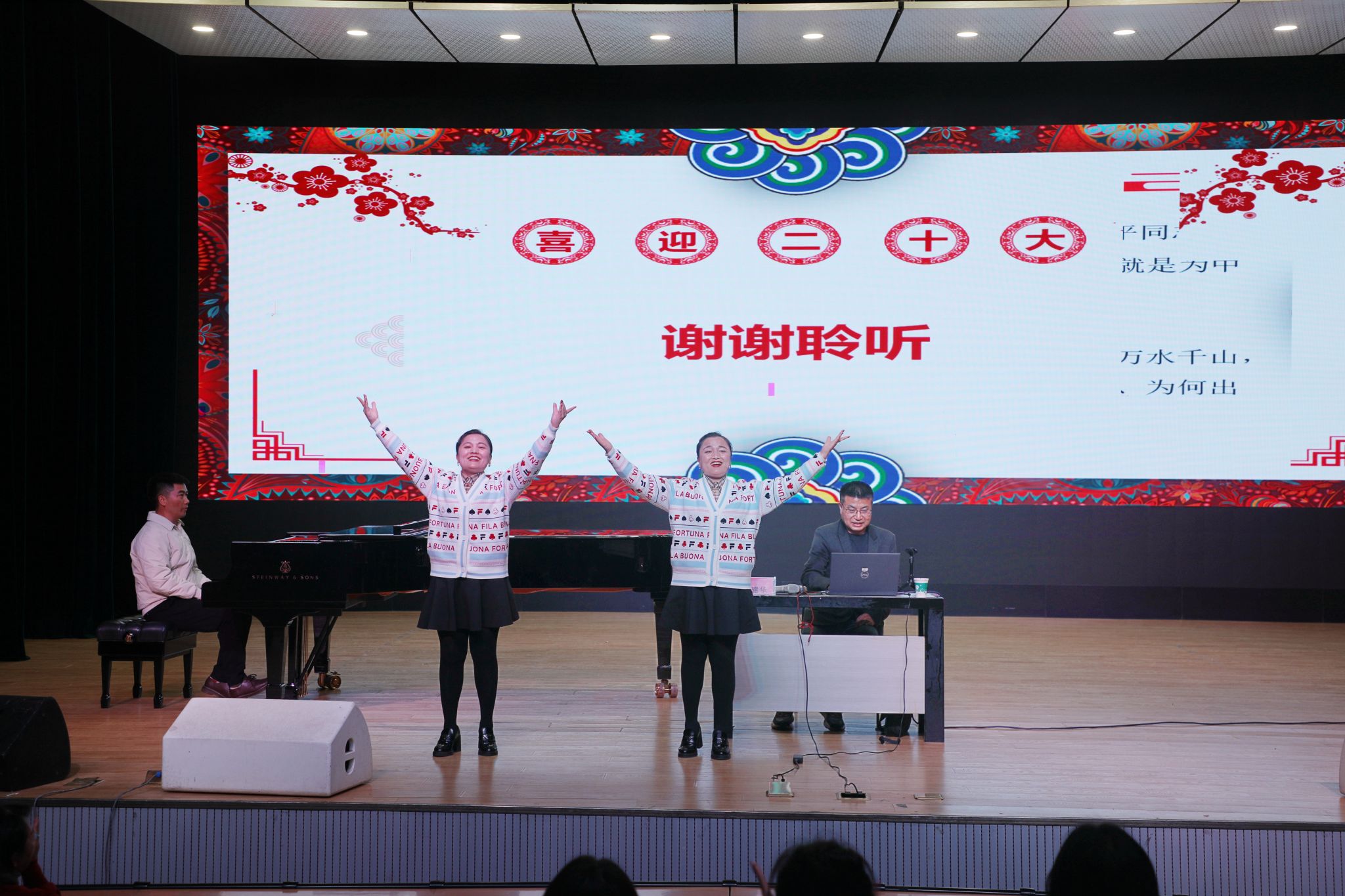 田建华老师以“音乐作品中的党史”为题,为在座学员展示了音乐专业领域的党史知识,通过将音乐艺术与党史课相结合,带领大家重温中国共产党百年自强不息的奋斗历程。讲座结尾由公司青年党员教师高雪红伴奏,员工第二党支部书记张双双、教工第三党支部委员张菲菲深情演绎《我和我的祖国》,带动全场齐声同唱。党史故事在钢琴声中入耳入心,党员信念在交响音乐中坚定有力,一颗颗闪耀的红心在乐声中熠熠生辉。