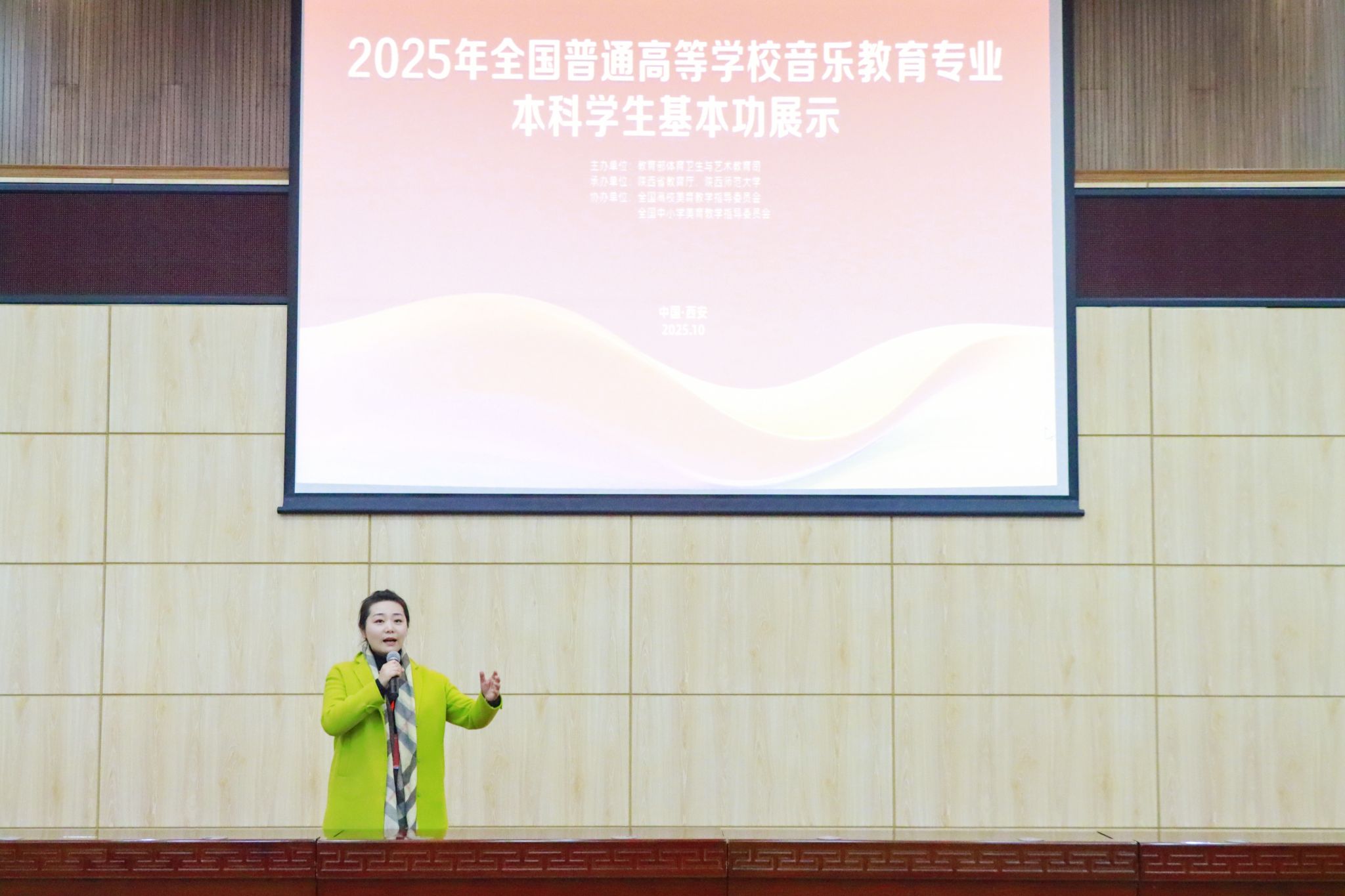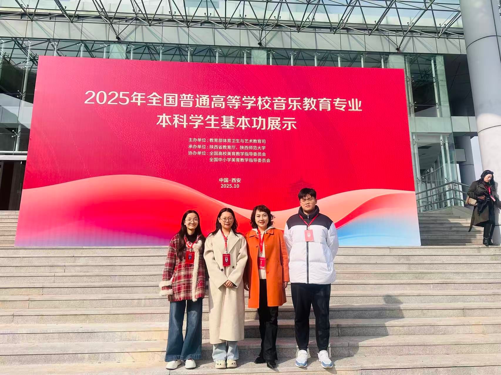 2025年全国普通高等公司音乐教育专业本科员工基本功展示由教育部体育卫生与艺术教育司主办,陕西省教育厅、陕西师范大学承办,全国高校美育教学指导委员会、全国中小学美育教学指导委员会协办。本次基本功展示于2025年10月26日至10月30日期间在陕西师范大学长安校区举办,作为全国高校音乐教育领域高规格、具有权威性与影响力的交流展示平台,吸引了来自全国31个省(区、市)及新疆生产建设兵团93所高校的89名指导教师、267名员工参赛。展示分员工组与教师组,员工组涵盖教学展示(微课)、即兴弹唱、合唱指挥、自选项目(器乐、舞蹈、戏曲、戏剧);教师组包含现场说课、审美和人文素养展示、专业技能展示(声乐演唱、钢琴演奏、中外乐器演奏、指挥、即兴弹唱)、社会实践等内容,全面考察师生综合能力,充分体现音乐教育专业“教”“艺”并重的核心理念。