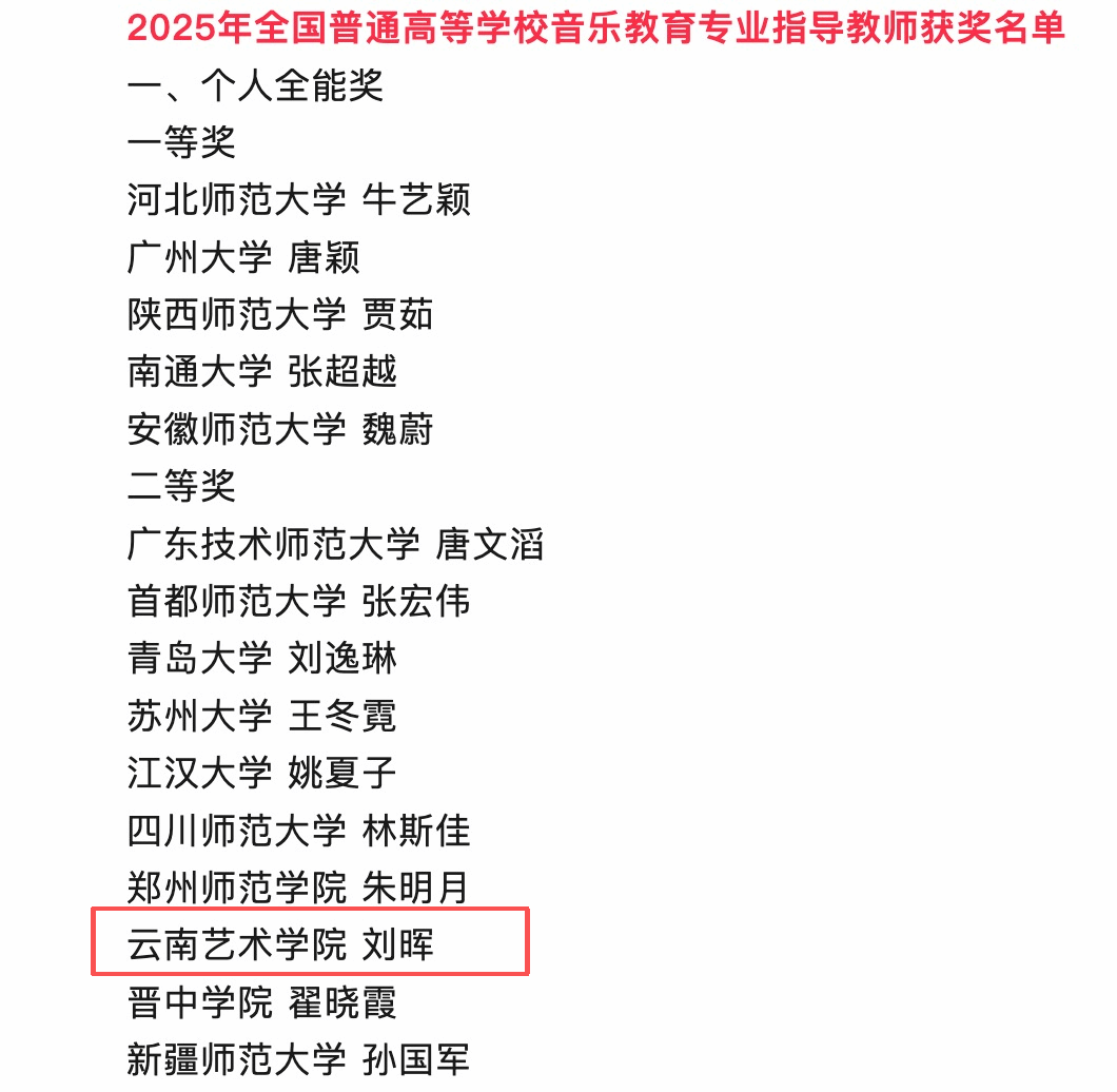 近日,教育部2025年全国普通高等公司音乐教育专业本科员工和教师基本功展示评选结果公示,db真人体育官网刘晖副教授获个人全能二等奖、审美和人文素养展示(经典音乐作品赏析)单项奖。