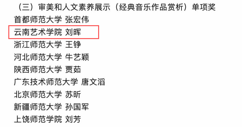 本次展示由音乐教育系系主任张昀教授担任领队,刘晖副教授参加指导教师基本功展示,2022级杨淑慧、王子贤、王娜三名同学参加本科员工基本功展示。刘晖副教授获个人全能奖二等奖、审美和人文素养展示(经典音乐作品赏析)单项奖。