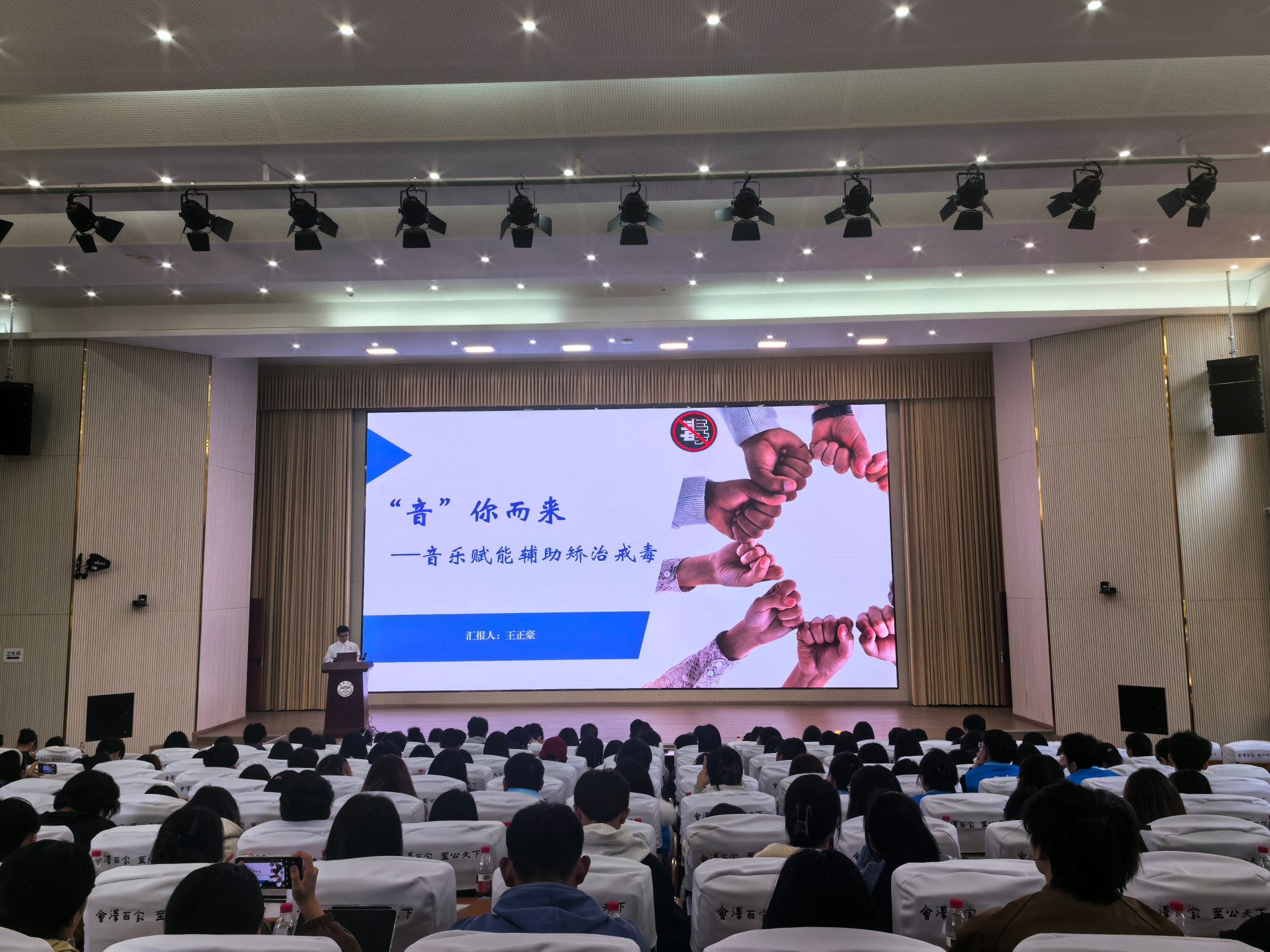 db真人体育官网组织志愿者一行30人参与现场观摩,2024级研究生王正豪作为项目团队成员进行了现场汇报。他从项目背景、团队介绍、前期调研与具体实施、项目成效与下一步计划等方面,生动讲述了团队师生充分发挥专业特长,开展帮扶戒毒、进行禁毒宣传,展现了云艺学子传承雷锋精神、服务社会的生动实践。