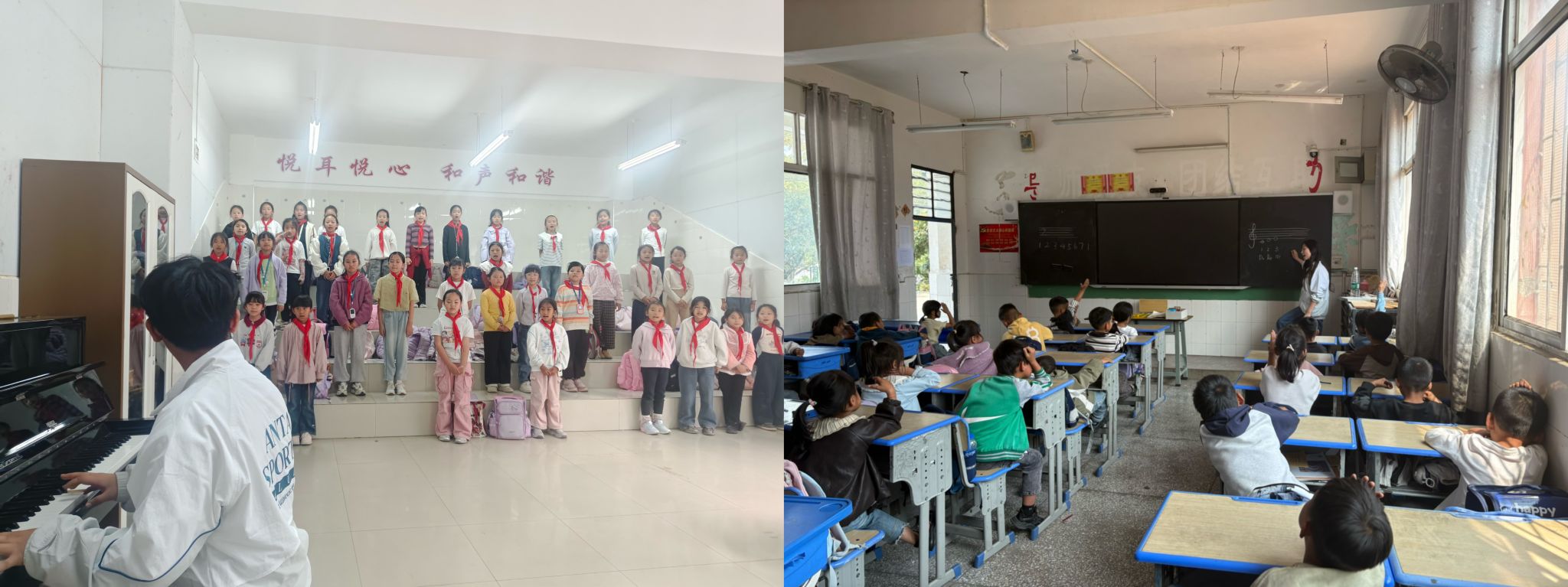 (2026年3月23日,红河一小,马礼翱给员工排练合唱) (万年塘小学,解馥睿给员工上课)