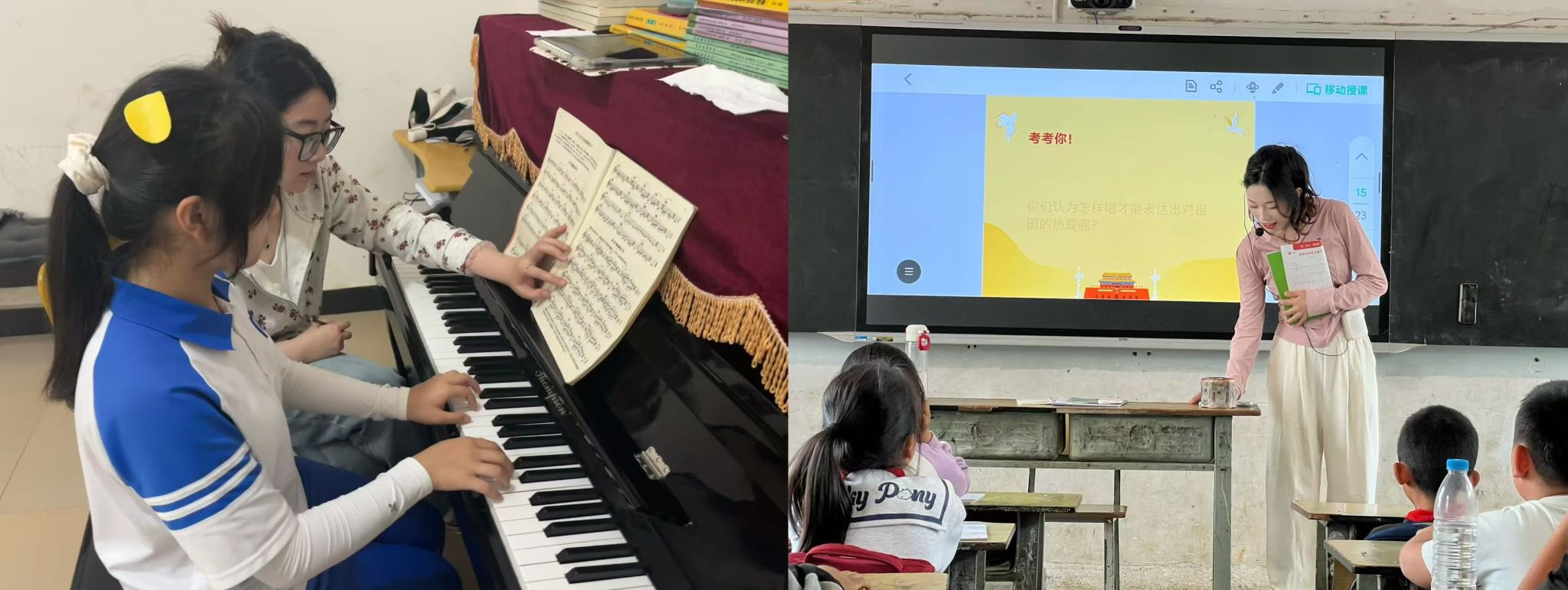 (2026年3月10日,红河一中,贾锦娟为员工上钢琴课)(万年塘小学,孙艺菲给员工上课)