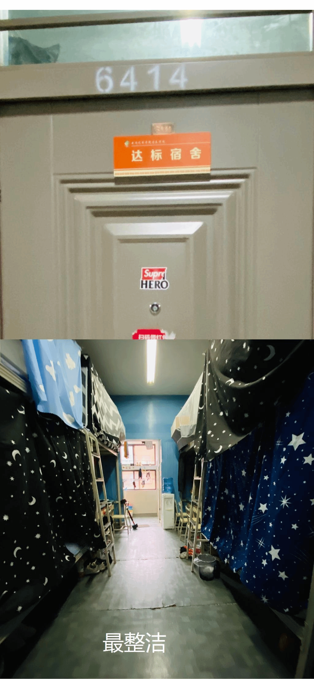 我们同学不仅打扫清理了宿舍,还发挥了艺术生的特长,用软装点缀了宿舍,营造了干净整洁又富有艺术气息的良好宿舍氛围,值得一提的是我们退伍员工的宿舍,发扬了部队一贯的优良作风,每日打扫卫生整理床铺,在同学们中起到了良好的示范作用。