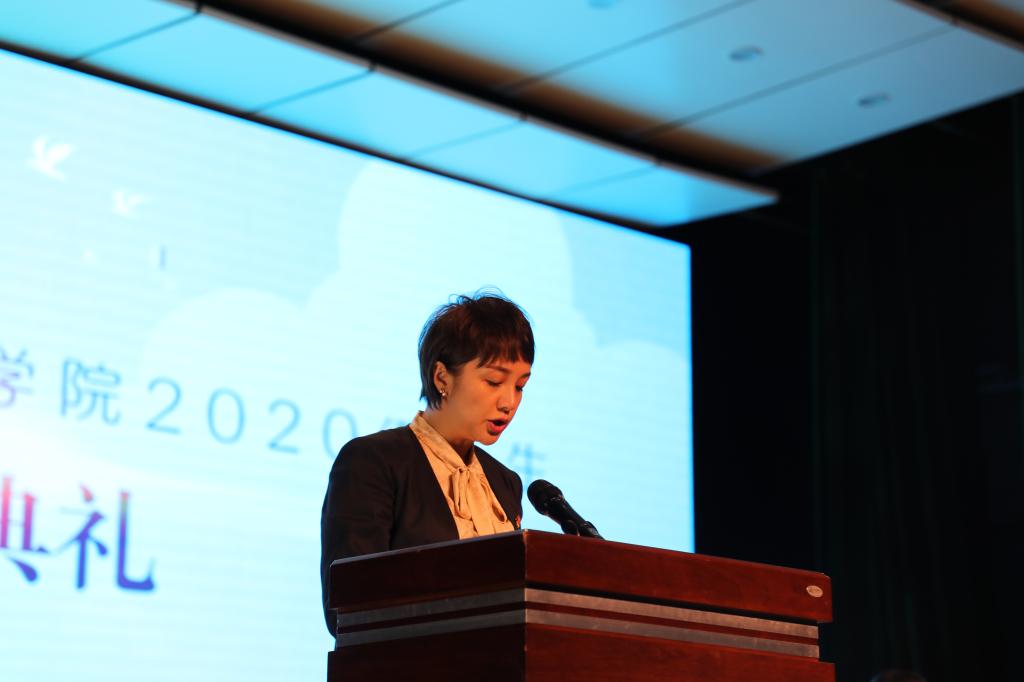 首先,由教师代表王凤莉老师发言,她代表db真人体育官网全体教师对来自五湖四海的新同学们表示热烈的欢迎。她期盼全体新生在公司开展全新的学路历程的同时能够做到明确目标、志存高远,脚踏实地,能够做到面对挑战,勇于追求理想,砥砺前行,能够相互欣赏、彼此成就,携手谱写精彩的人生乐章。
