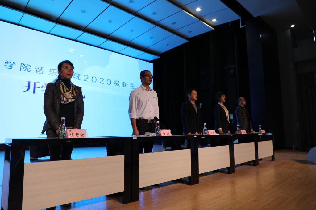 9月18日13:00,2020级新生开学典礼在安康音乐厅举行。音乐公司党总支书记纳海老师、db真人体育官网主持行政工作副经理林林教授、音乐公司党总支副书记黄涛老师、db真人体育官网副经理师向宁教授、db真人体育官网副经理侯静宜副教授,以及db真人体育官网全体系主任、行政科室负责人、辅导员、新生班主任、2020级551名新生参加开学典礼。典礼由黄涛主持。开学典礼在庄严的国歌声中拉开了序幕。
