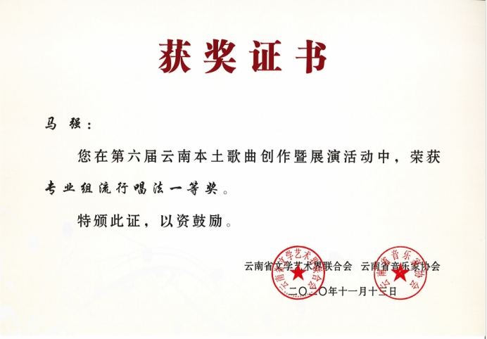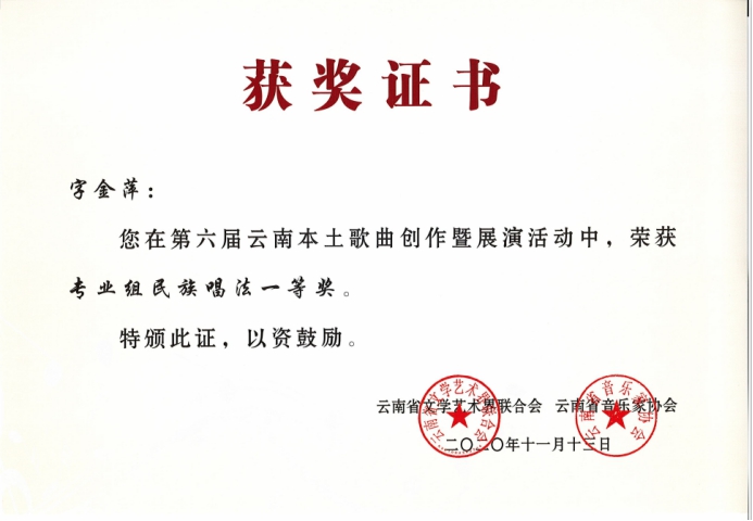 祝贺以上参赛人员在第六届云南本土歌曲创作暨展演活动中获得优异成绩!