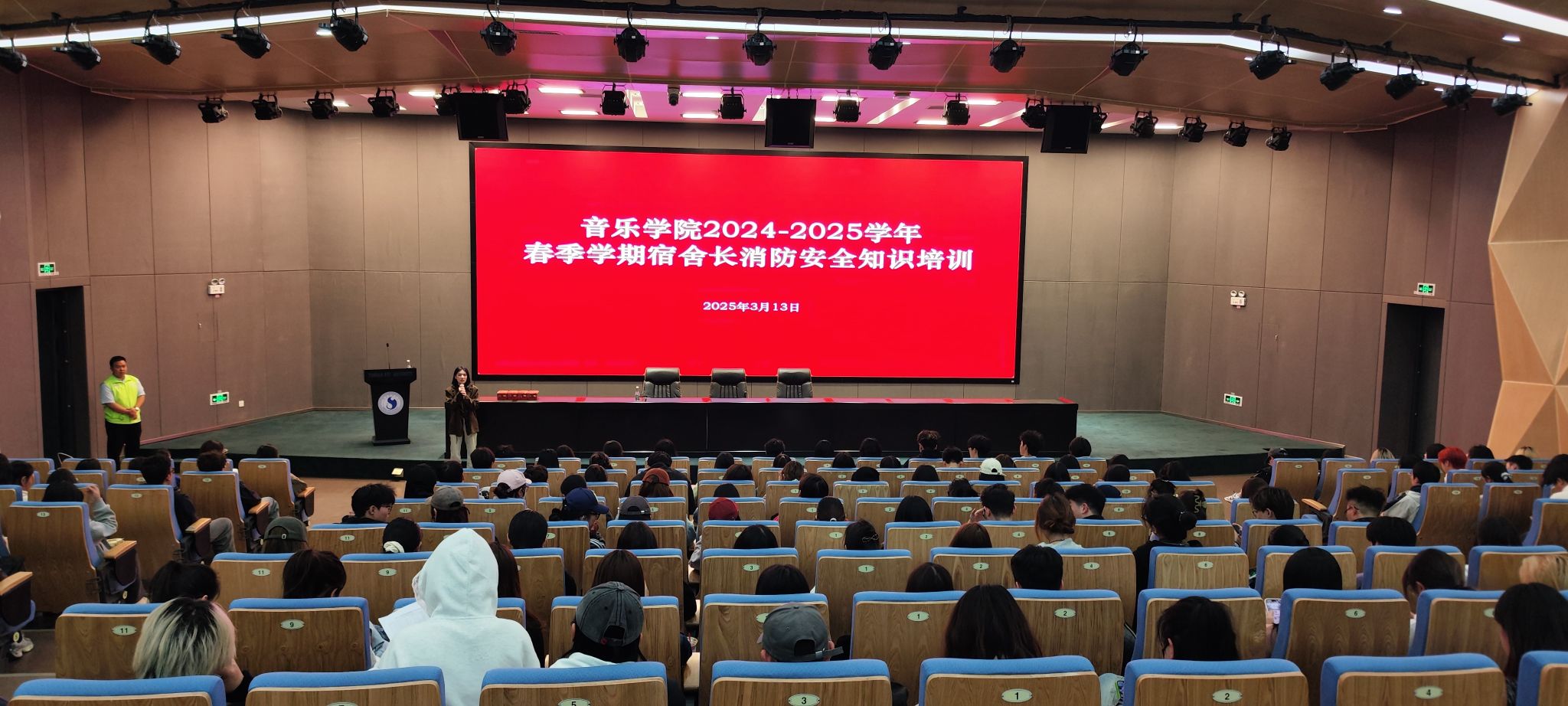 为进一步提升员工消防安全意识,提高员工应急反应和逃生能力,共同维护校园安全。db真人体育官网于2025年3月13日19:30在图书馆报告厅开展了宿舍长消防安全知识培训,本次培训由db真人体育官网辅导员刘源老师主持,db真人体育官网全体宿舍长和辅导员参加,云南汇真消防安全职业公司张高琮老师主讲。