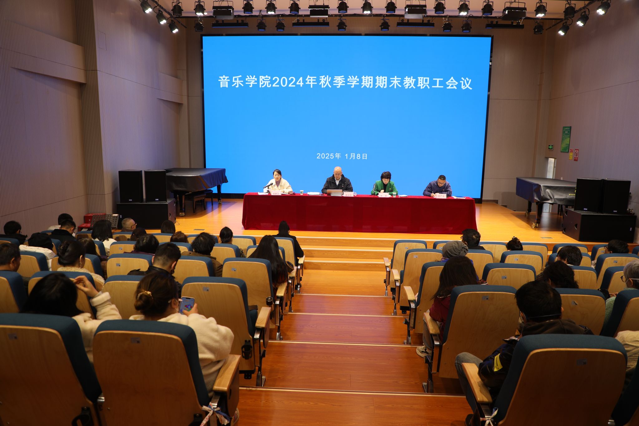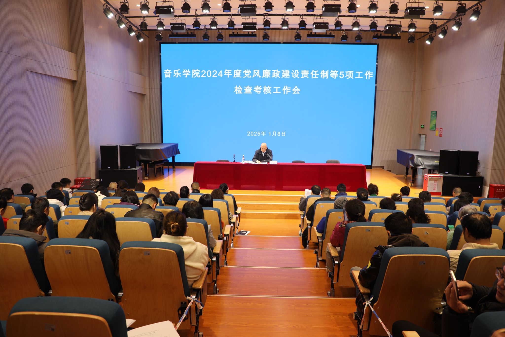 2025年1月8日上午,db真人体育官网在B403会议室召开2024年度党风廉政建设责任制等5项工作检查考核工作会暨2024年秋季学期期末教职工会议。第一阶段会议由DB视讯2024年度党风廉政建设责任制检查考核第2工作组、音乐公司党政班子、全体教职工参加;第二阶段会议由音乐公司党政班子、全体教职工参加;两阶段会议均由音乐公司党委书记童汝全主持。