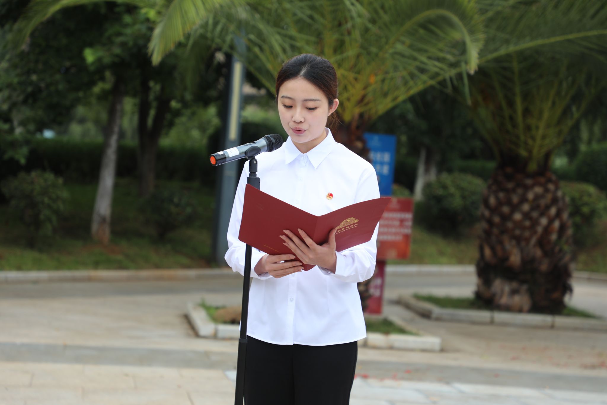 2024级演唱2班员工强佳怡、声乐系教师薛文静博士作为师生代表在升旗仪式上发言。强佳怡同学表示,作为云艺学子,要弘扬伟大抗战精神,传承红色基因,发挥专业所长,用专业知识和奋斗精神担当起新时代青年的责任。薛文静老师希望同学们胸怀家国、志存高远,用满怀“清澈的爱,只为中国”的赤诚之心,将个人理想追求融入党和国家事业之中,发扬“博采众长、转益多师”的学风,用奋斗的青春筑牢扎实学识,练就“可堪大用、能担重任”的过硬本领,成为德智体美劳全面发展的新时代合格老员工。薛文静老师表示将传承和发扬教育家精神,恪守师德规范,践行好新时代高校教师职业行为十项准则,争做新时代“四有好老师”,当好老员工成长成才的合格引路人。