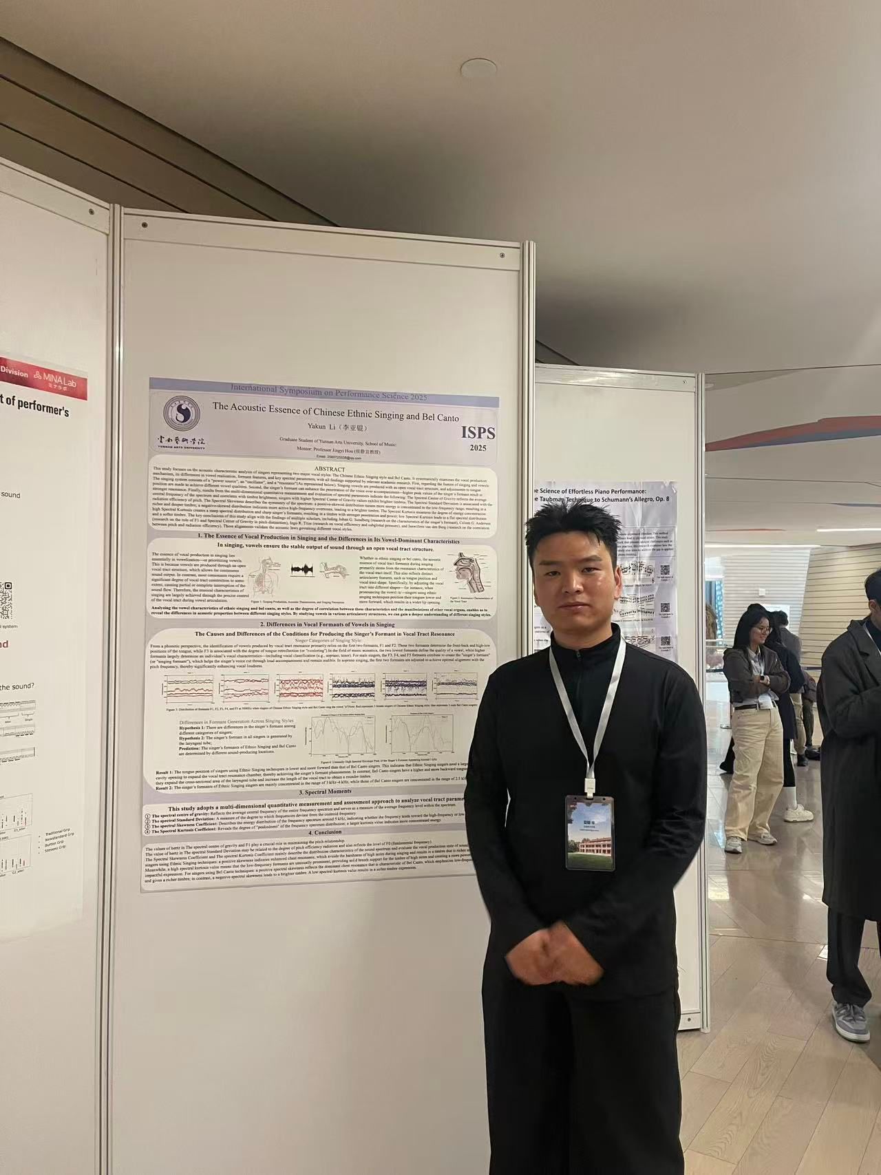 2025年10月29日—11月1日,第十届表演科学国际研讨会(ISPS 2025)在上海公司举办。作为全球音乐表演研究领域的盛会,本次会议首次登陆中国,吸引了来自五大洲30多个国家和地区的200余位学者、演奏家与教育家齐聚一堂,共话“实践中的表演科学”。db真人体育官网硕士研究生李亚锟围绕《The acoustic essence of Chinese ethnic singing and bel canto》(《中国民族唱法与美声唱法的声学本质》)的核心研究内容,整理形成的研究海报成功入选大会海报展演。指导教师为侯静宜教授。