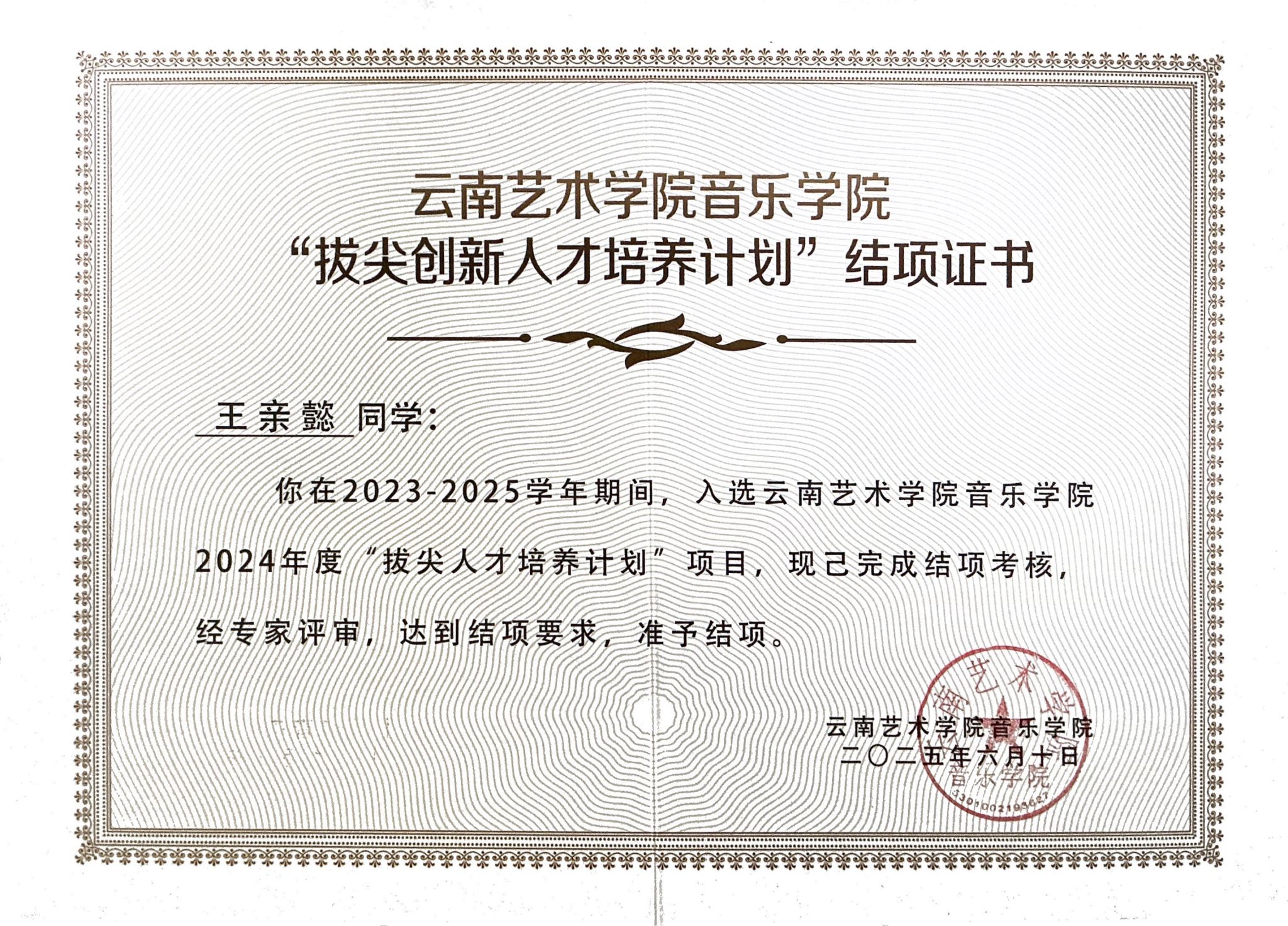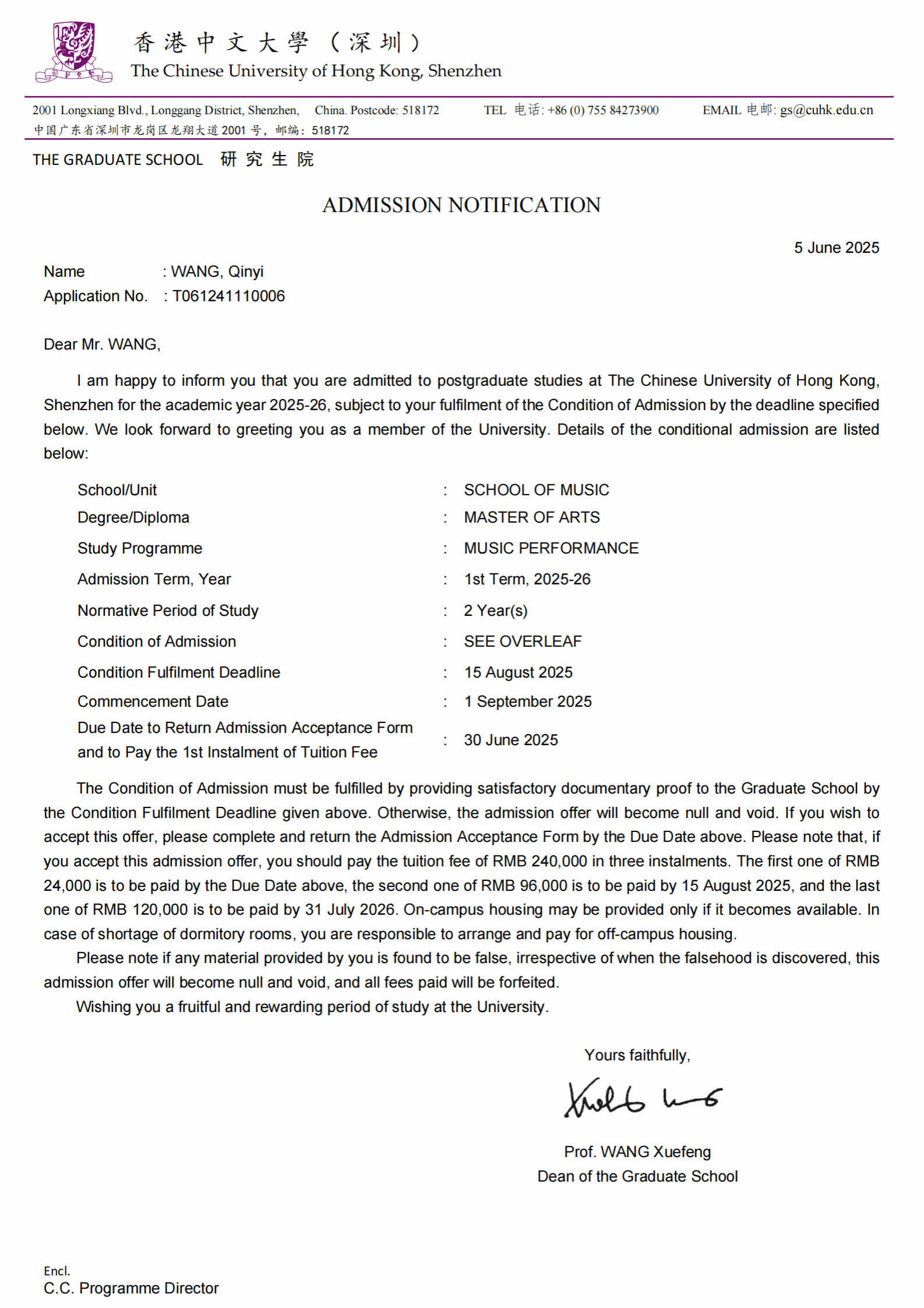 2025年6月,2021级本科生王亲懿获得了香港中文大学(深圳)db真人体育官网音乐表演(单簧管)专业的硕士研究生录取通知书。